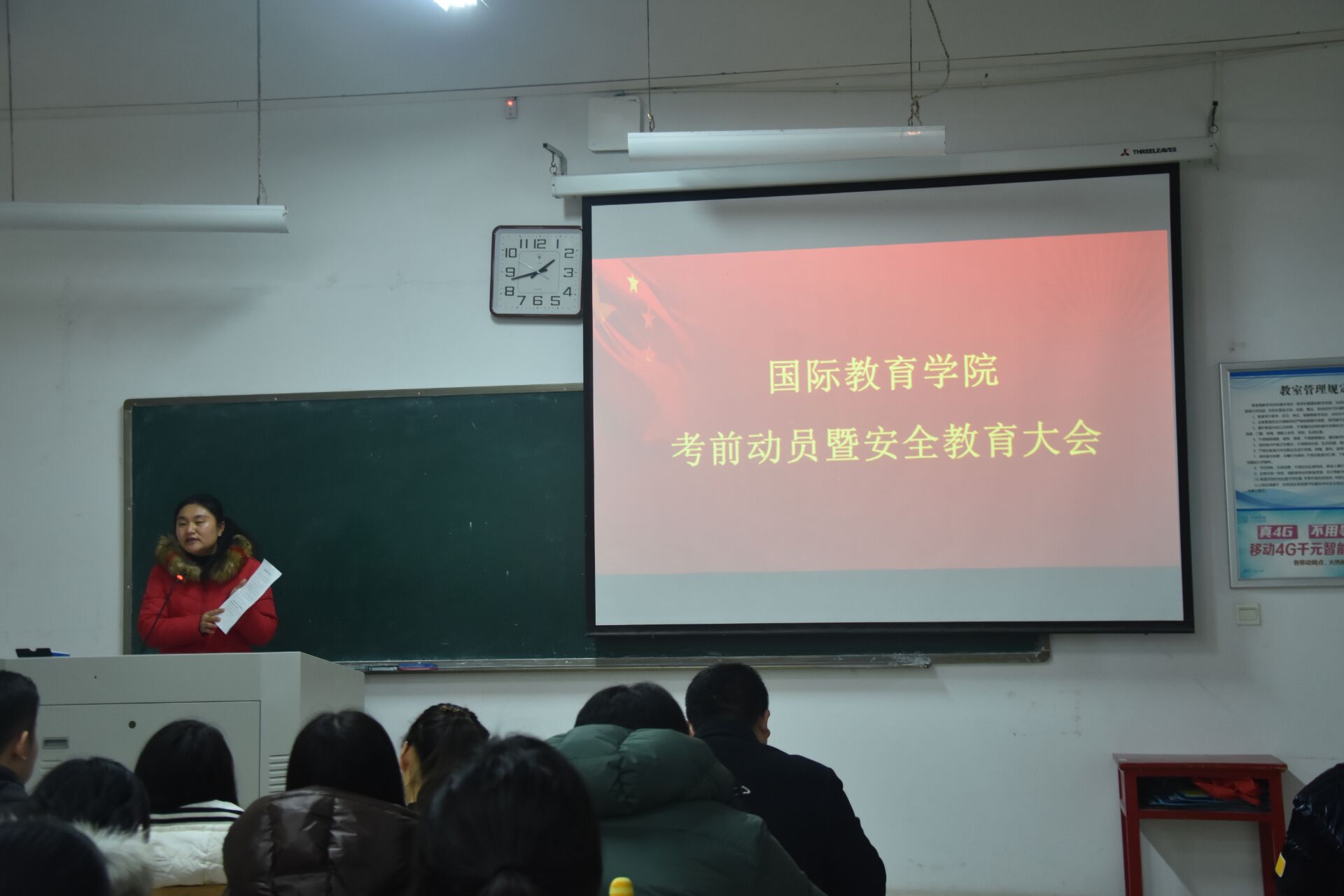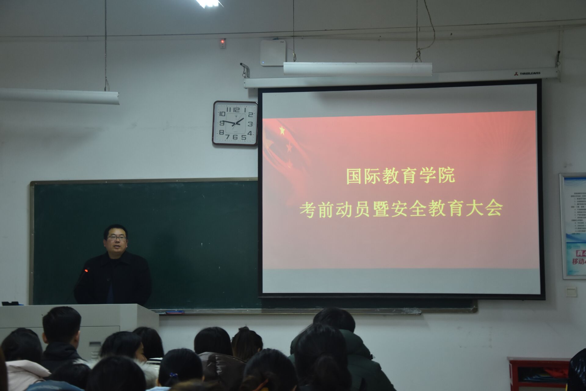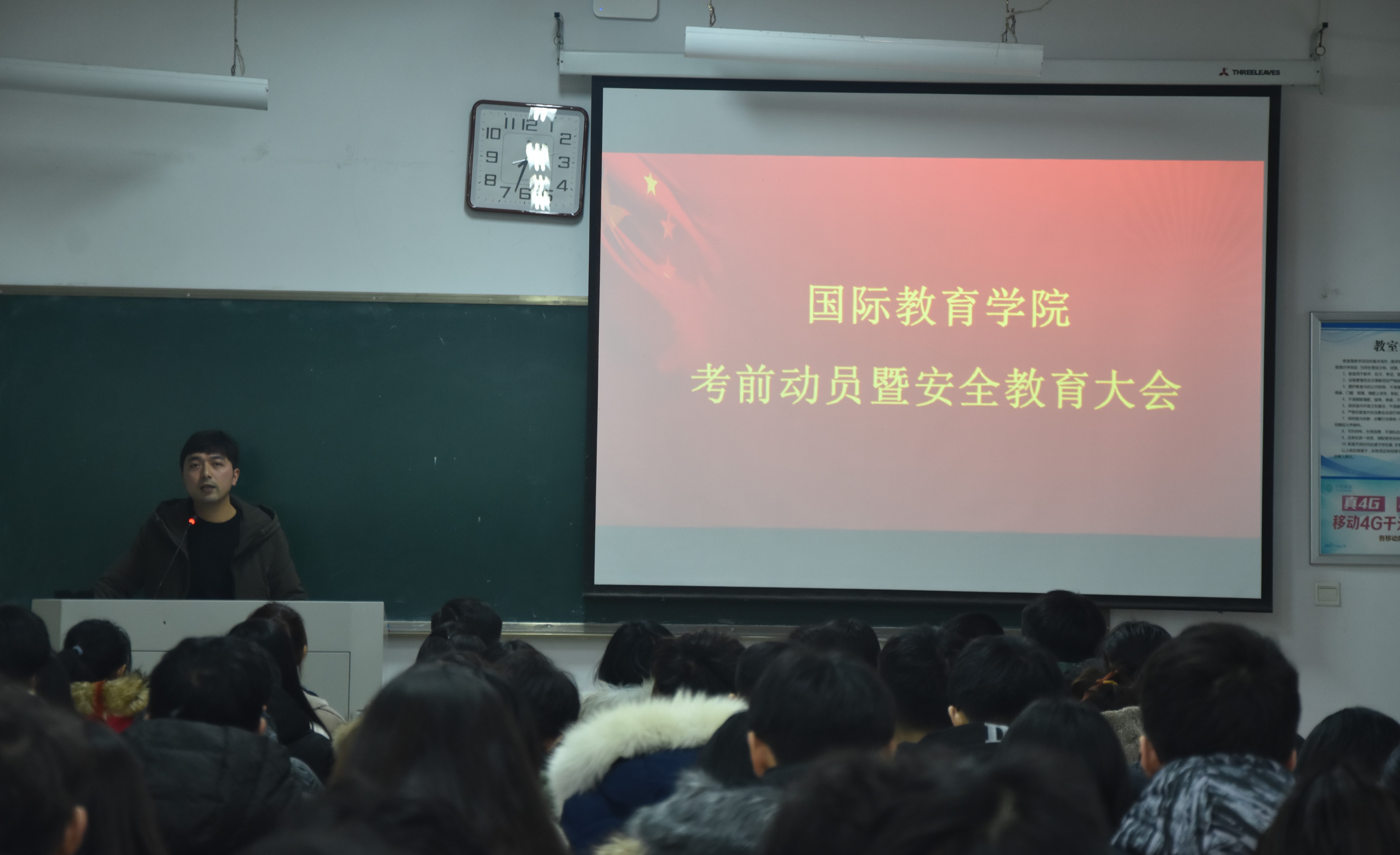 会上,马磊老师首先传达了《关于认真做好2019—2020学年第一学期期末考试工作的通知》,并倡导同学们签订《考试诚信承诺书》。接着,马磊老师对期末考试安排作了详细阐述,并反复向同学们强调“考场诚信”的重要性,希望同学们自觉维护考场纪律,杜绝考场舞弊现象。