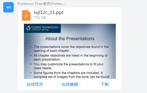 围绕着数据库系统的主题, Chen老师创设了生动真实的语境情景,。Chen老师的开朗和善的的话语让同学们摆脱了起初的拘谨,课堂气氛变得十分活跃,员工发言更积极主动。聆听着纯正的英语口语,感受着数据库系统的无限魅力,员工们表现出对数据库系统学习的极大兴趣和信心。