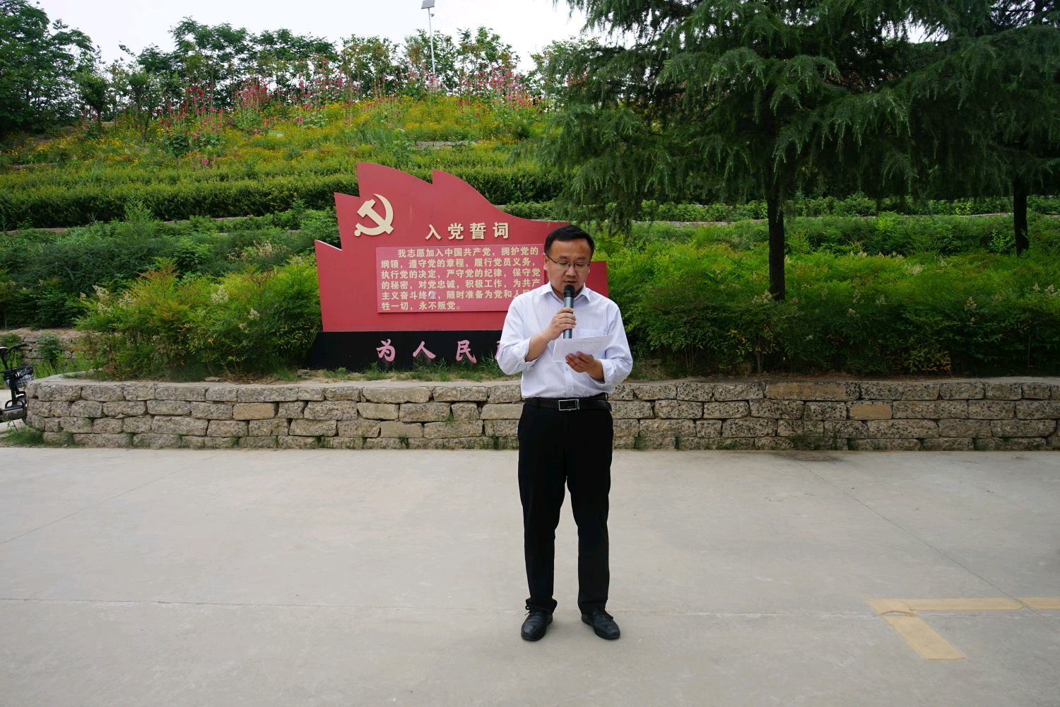 宣誓仪式在庄严的《国际歌》声中拉开序幕, 参会党员全体肃立,在薛霁带领下,面向党旗,高举右手,郑重宣誓,铮铮誓言,表达了身为新时代共产党员的责任与担当,更许下了对党忠诚、永不叛党的坚定承诺。随后,员工党员代表周庆祥从党组织的关怀与培养、提升个人党性修养、树立终身学习的观念三个方面发表感言,他表示将铭记入党誓词,练就过硬本领、锤炼品德修为,充分发挥员工党员的先锋模模范作用,以实际行动践行庄严承诺。