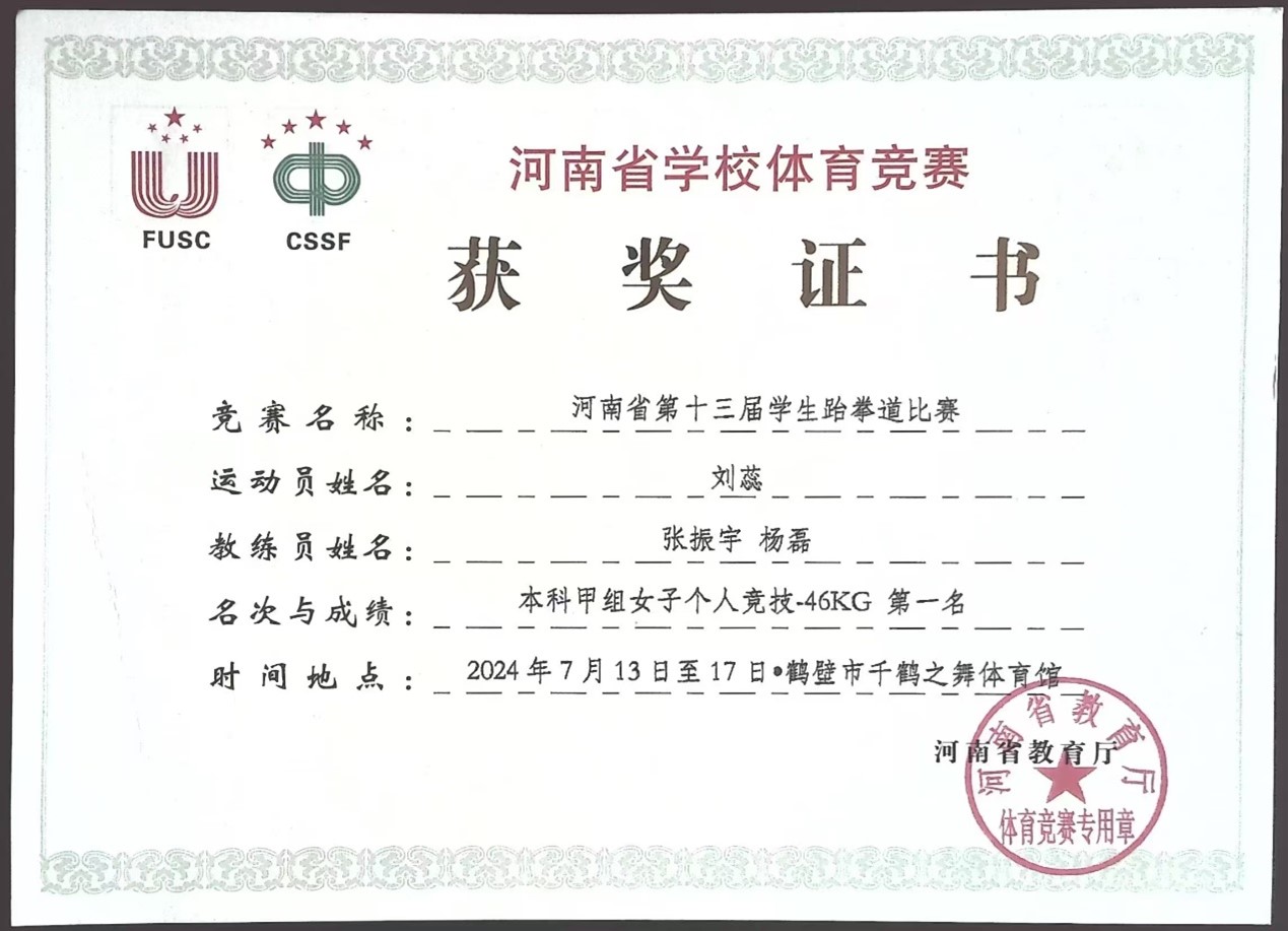 (五)best365足球官网学子在河南省第十三届员工跆拳道比赛荣获冠军