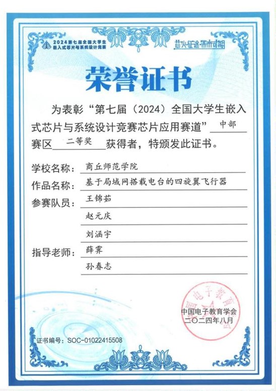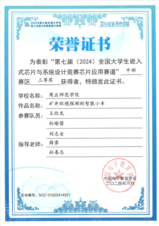 (三)best365足球官网师生第七届(2024)全国老员工嵌入式芯片与系统设计竞赛中荣获中部赛区二等奖和三等奖