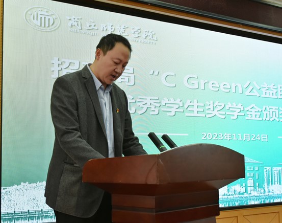 颁奖典礼上,公司党委副书记陈东鹏宣读了《关于表彰2022-2023学年招商局“C Green公益助教计划”优秀员工奖学金获得者的决定》。随后,与会领导分别向优秀员工奖学金获得者代表颁奖。