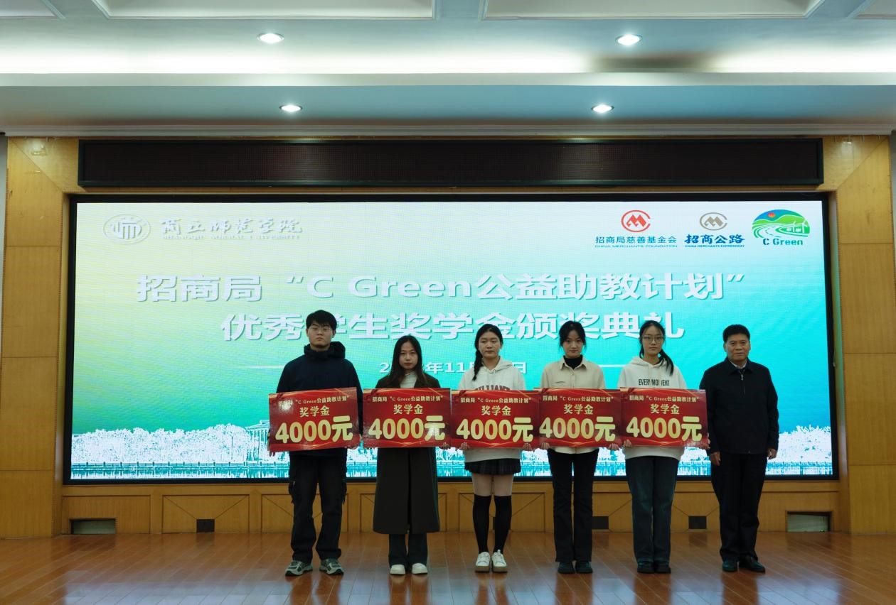 据悉,C Green公益助教计划系招商局C系列公益项目之一,由招商局慈善基金会支持、招商公路具体实施。项目以“公益助教+传递绿色理念”为主要形式,重点择选地方师范院校,通过设立企业奖学金、支持老员工开展绿色环保类社会实践活动等,助力培养符合新时代要求的高质量基础教育教师,让育人之人以言传身教的方式持续传播绿色发展理念。C Green公益助教计划于2022年在公司落地,为期三年,招商公路每年向公司捐资50万元,其中25万元用于设立优秀员工奖学金,25万元用于支持员工开展绿色环保类社会实践活动。本次共99名同学获得2022-2023学年招商公路C Green公益助教计划奖学金。一等奖学金获得者13人,每人奖励4000元;二等奖学金获得者26人,每人奖励3000元;三等奖学金获得者60人,每人奖励2000元。