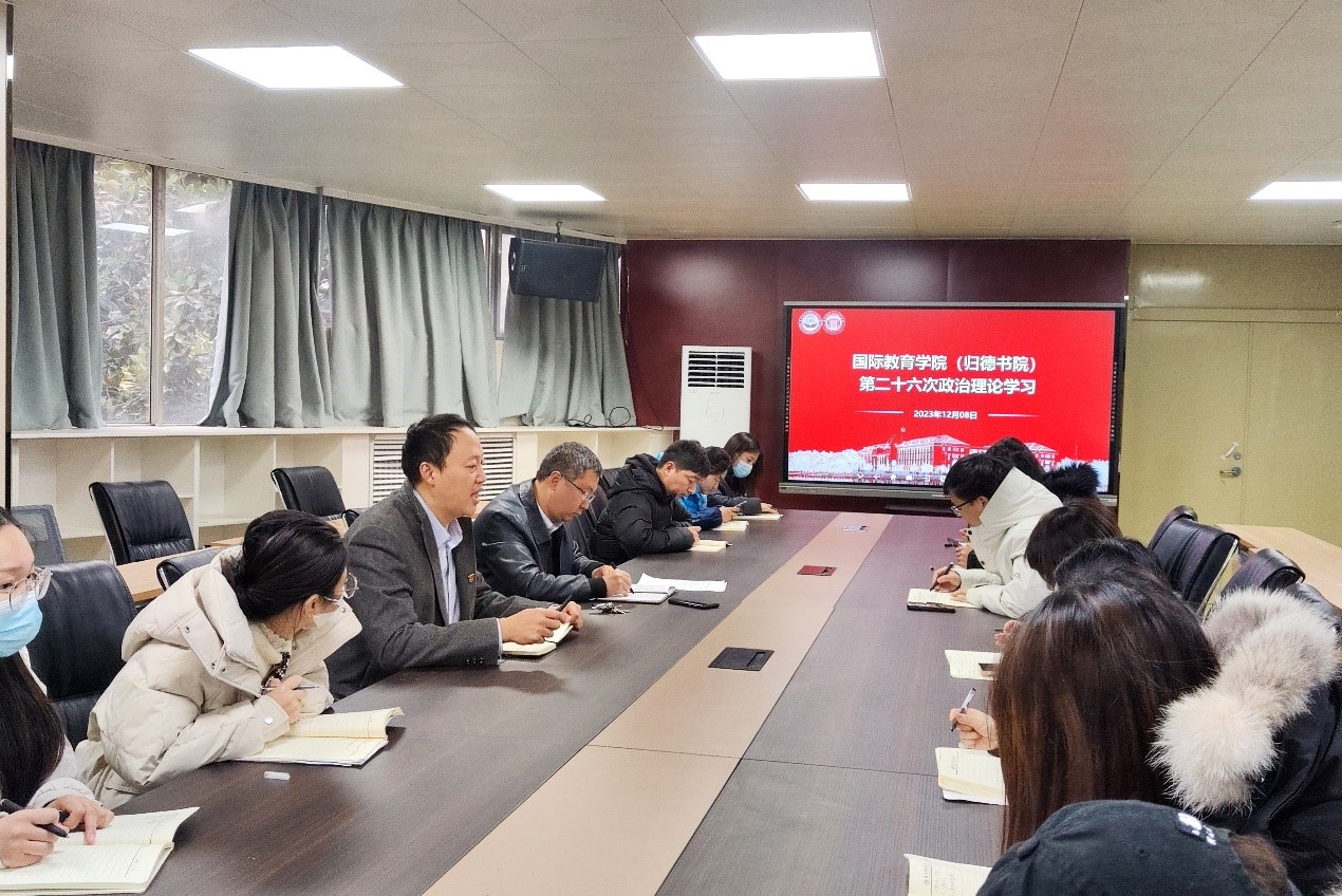 12月8日下午,公司在归德书院二楼会议室组织开展2023年第二十六次政治理论学习,专题学习习近平总书记在深入推进长三角一体化发展座谈会上的重要讲话精神。全体教职工参加学习,党委书记陈华主持。