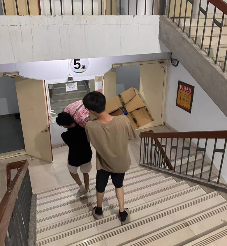 在搬迁过程中,公司领导下沉一线、靠前指挥,公司全体辅导员忠于职守、一线作战。员工志愿者们不断穿梭在楼宇之间,用双手接过一份份沉重的行李,也接过了同学们的信任和感激。在这个过程中,他们展现出了高度的责任感和奉献精神,赢得了同学们的赞誉和尊重。