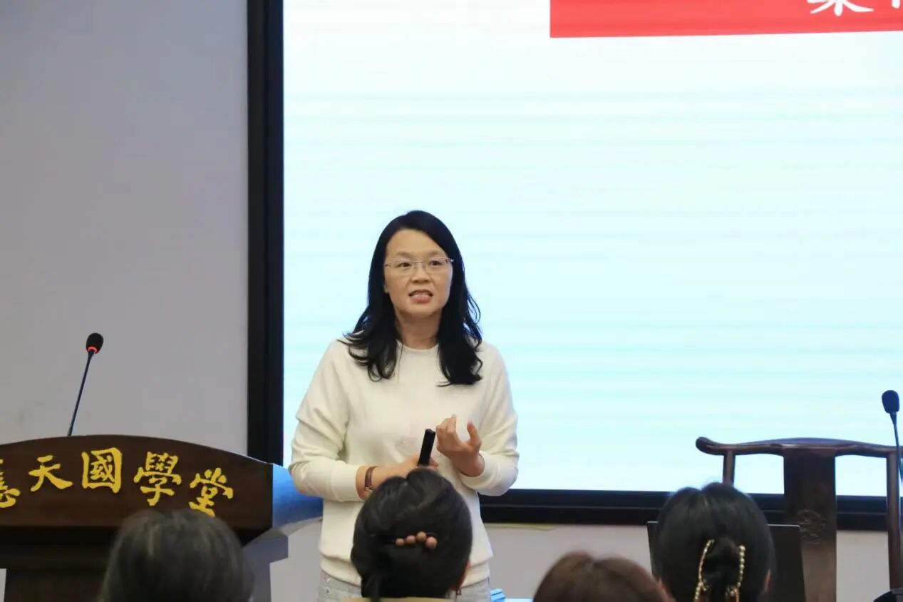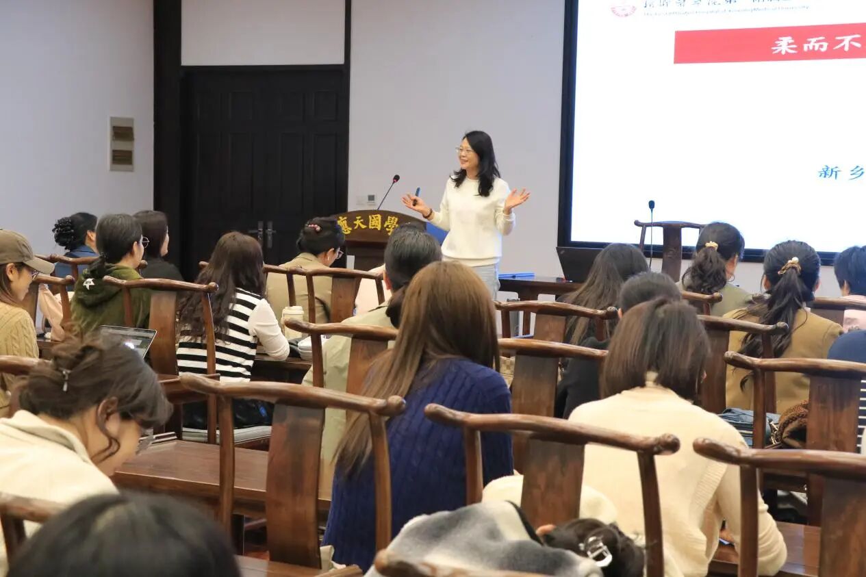 此次讲座,张朝辉教授围绕“女性心理特征”“职业女性心理健康状况”及“职业女性压力应对策略”三大核心板块展开系统阐述。她结合前沿研究成果与丰富临床案例,深入剖析了职业女性在职场竞争与家庭角色平衡中所面临的心理困境,并专业解读了压力、焦虑、情绪内耗等问题的成因。针对这些痛点,张教授提出了一系列涵盖情绪识别、碎片化减压及职场-家庭边界构建在内的科学调节方法,提供了具实操性的心理调适方案。在互动环节中,通过专业压力测试与现场交流,张朝辉深入了解女性教师当前心理状态,并针对所反映的问题,提出以“柔、静、坚、悟”四维调节法为核心的应对策略,引导大家通过情绪柔化、心境静养、意志坚定与认知觉悟,有效调适心理状态,提升自我调节能力。