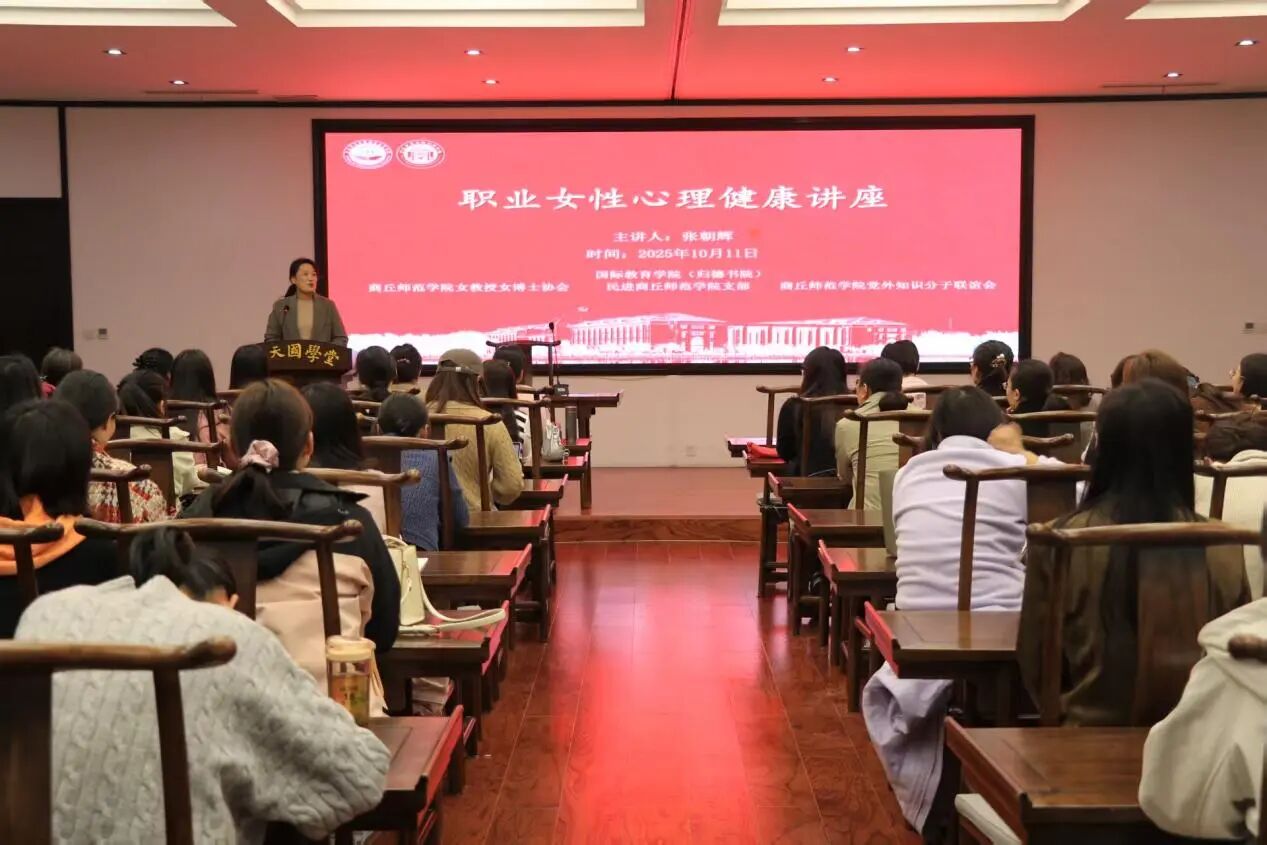 为深入关切公司女性教职工心理健康需求,助力其有效疏解职场压力、构建工作与生活的动态平衡,以更积极饱满的状态投身公司产品与个人发展,时值第34个世界精神卫生日之际,10月11日,best365足球官网“归德大讲堂” 特邀资深心理专家张朝辉教授,在汉梁楼应天国学堂开展 “柔而不弱,坚而不强——职业女性心理健康” 主题讲座。本次讲座由best365足球官网联合best365足球官网女教授女博士协会、民进best365足球官网支部、商丘师范公司党外知识分子联谊会共同主办,公司女性教职工代表参会,best365足球官网副经理杨静主持。
