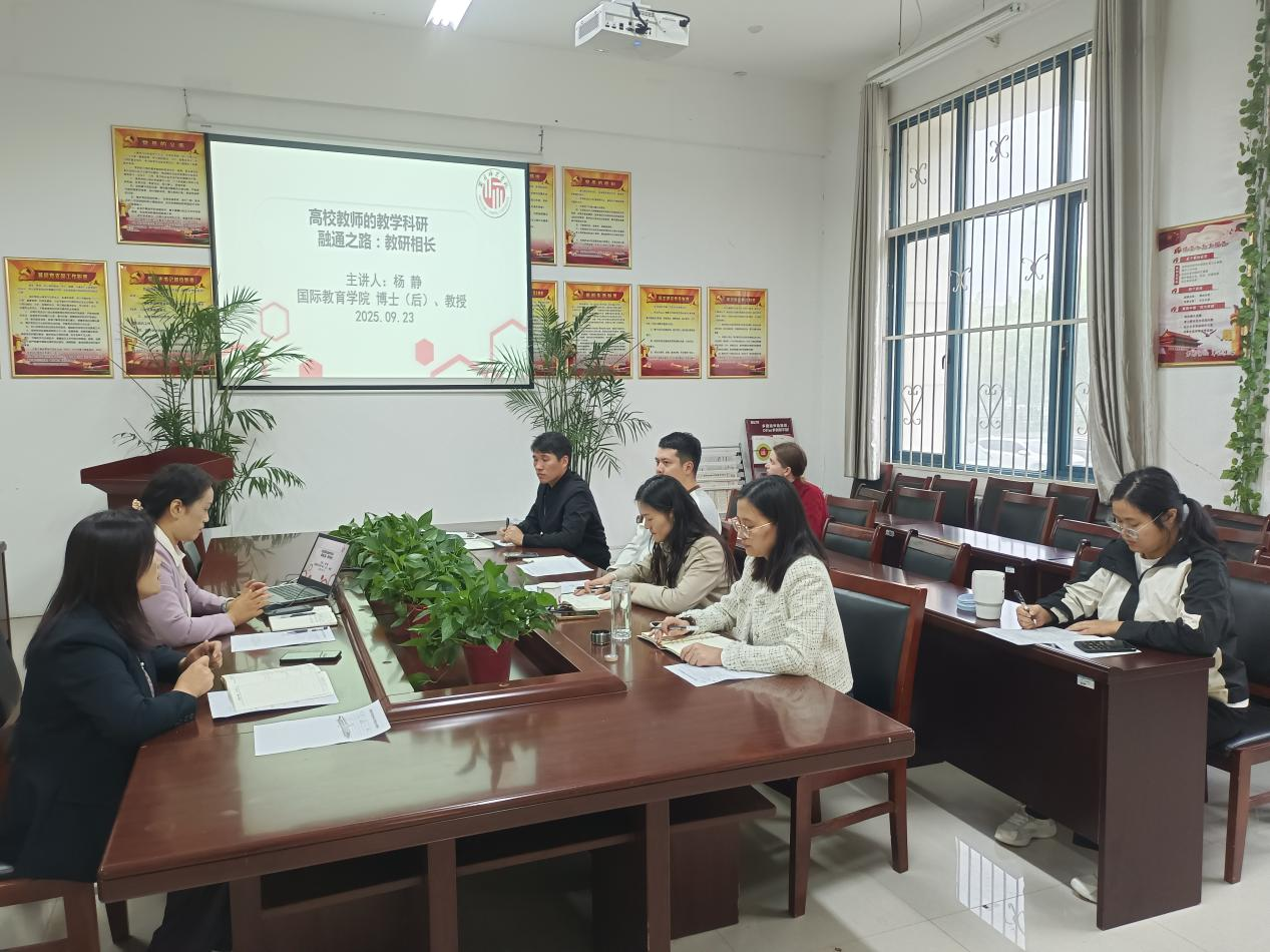9月23日下午,在汉梁楼144,best365足球官网举行了课程思政教学专题讲座,best365足球官网副经理杨静教授做了“高校教师的教学科研融通之路:教研相长”的主题报告。best365足球官网全体任课教师参加。