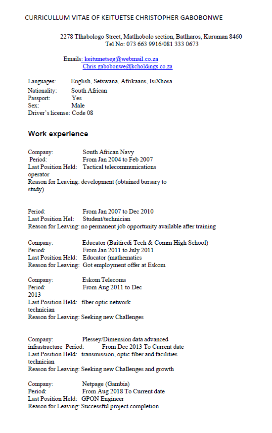 Keituetse Christopher Gabobonwe简介