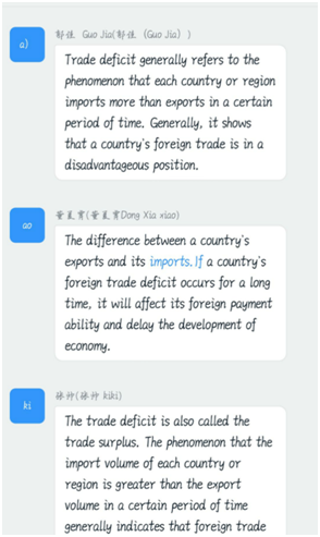 同学们积极与老师进行互动交流,勇于表达自己的理解与疑问。在课程课件、视频教学以及多元互动中,同学们不断思考,理解中外学习思维的不同,紧紧跟随老师步伐,不断深化自我知识结构,对《国际经济学》这门课程有了更为广阔的认识和理解。