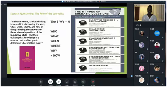 课堂上,KuKu老师向同学们介绍了记者的职能,以及新闻采编的技巧,帮助员工进一步了解中外的新闻学知识。