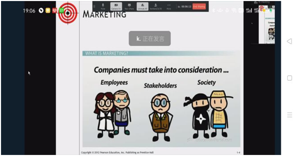 根据中外合作办学的教学要求,为引进国外优质教育资源,提高员工专业技术能力,结合人才培养方案,best365足球官网于2021年3月为2017级和2019级电子商务专业员工引进课程Marketing(《市场营销学》),此次线上授课教师是来自美国的Kendra Denise Moore。
