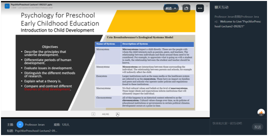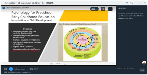 根据中外合作办学的教学要求,为引进国外优质教育资源,提高员工的专业能力,best365足球官网于2021年9月为18级和19级学前教育专业员工引进课程Developmental Psychology of Preschool Children (《学前儿童发展心理学》),此次线上授课教师是来自美国的教授Brian P. Jeran。