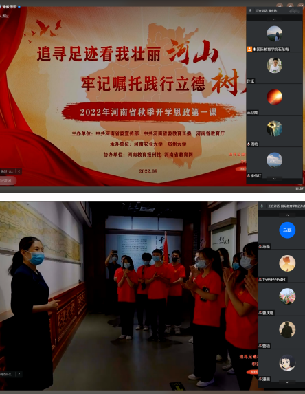 9月15日19:30,best365足球官网全体教师通过腾讯会议集体观看了2022年秋季开学思政第一课。此次活动由中共河南省委宣传部、河南省教育厅主办,河南农业大学、郑州大学承办。