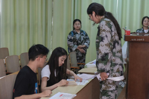新生入学资格复查工作中,副经理曹庆艳和新生辅导员认真核对新生录取通知书、身份证、准考证、考生纸质档案、考生录取名册等材料,逐一比对核查,认真查验考生报到所需各项原始材料,落实工作责任制,确保新生复查工作顺利进行。