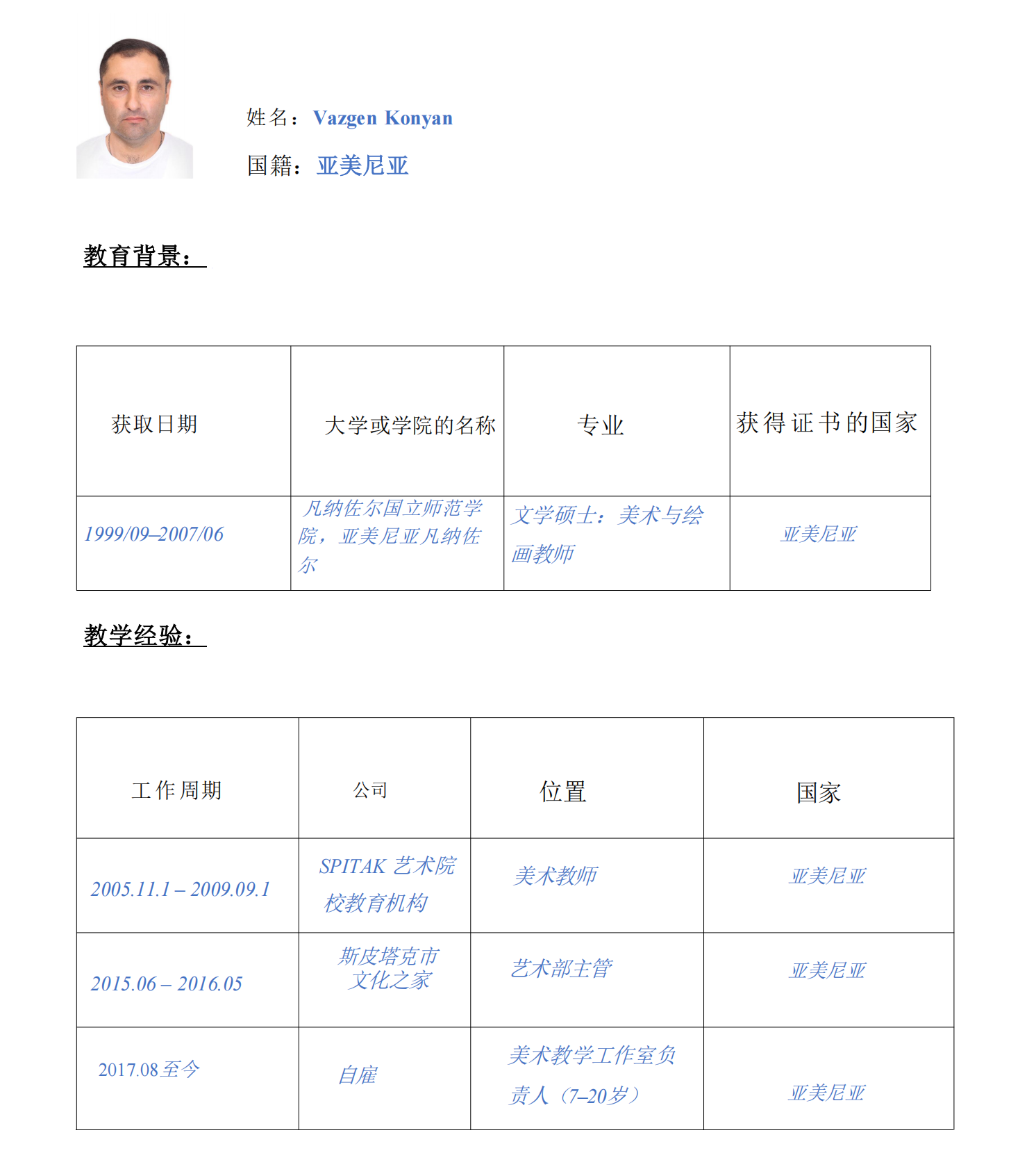 Vazgen Konyan教师简介: