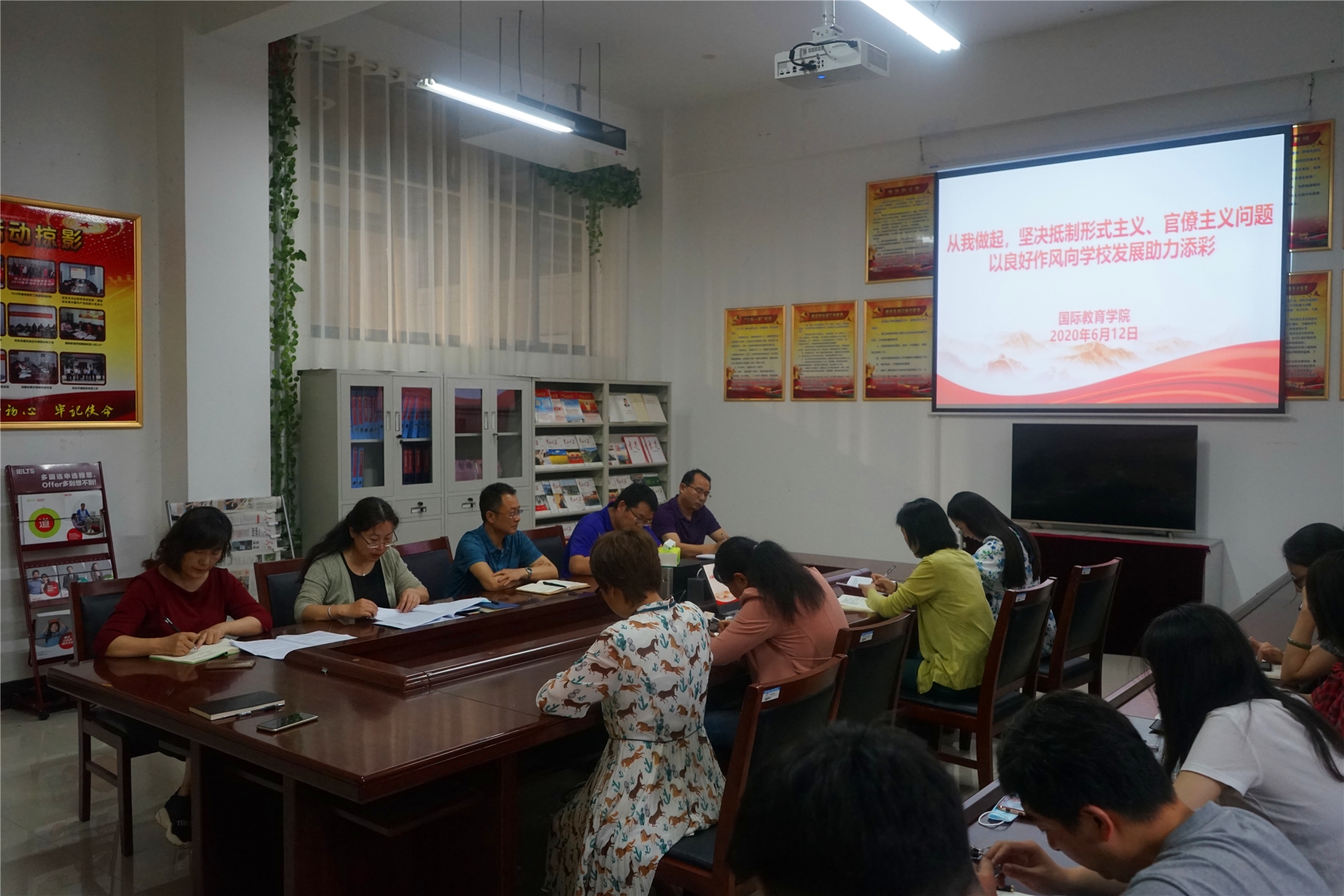 6月12日,best365足球官网在汉梁楼144党员活动室组织开展“从我做起,坚决抵制形式主义官僚主义,以良好作风为公司发展助力添彩”主题教育。公司领导班子、全体教职工参加了活动。会议由公司党总支纪检委员、副经理曹庆艳主持。
