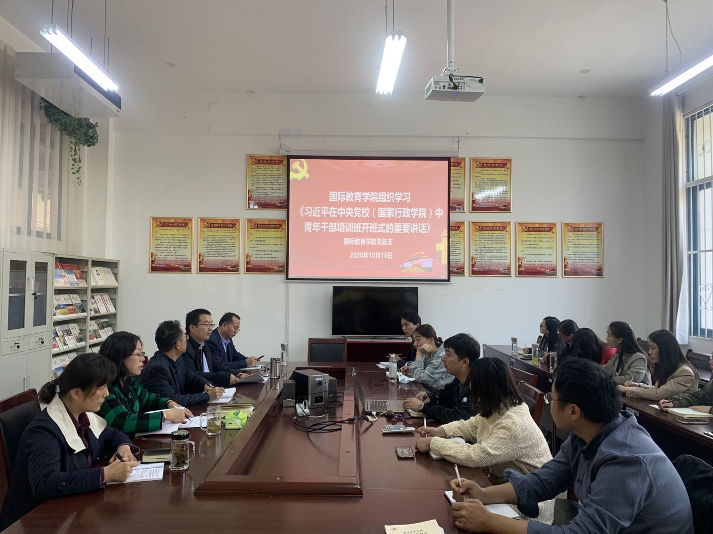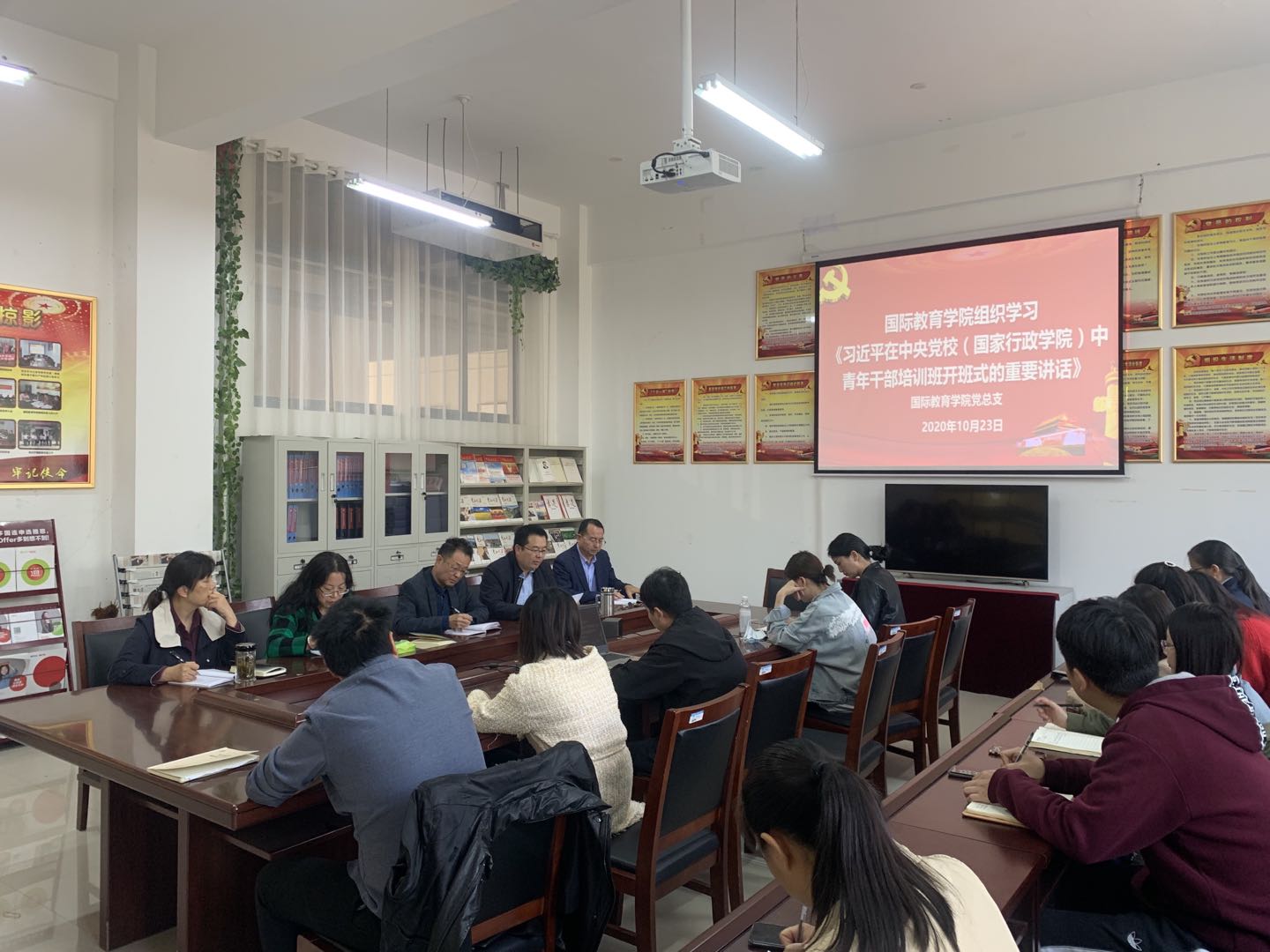 10月23日下午,best365足球官网在汉梁楼144党员活动室组织学习习近平总书记在中央党校(国家行政公司)中青年干部培训班开班式上的重要讲话。会议强调,要认真学习领会习近平总书记重要讲话精神,切实加强公司领导班子和辅导员队伍建设,特别是有针对性地加强公司辅导员队伍的思想淬炼、政治历练、实践锻炼、专业训练,帮助年轻教师提高解决实际问题能力,让他们更好肩负起新时代的职责和使命。党总支书记李秀琴主持会议。