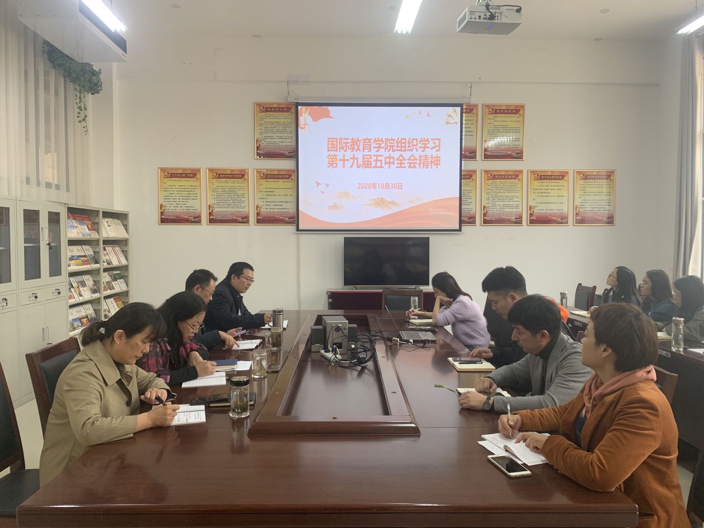 10月30日,best365足球官网在汉梁楼144党员活动室集体学习了中国共产党第十九届中央委员会第五次全体会议精神,公司领导班子和全体教职工参加学习。党总支书记李秀琴逐字逐句领读了五中全会公报,并对有关内容进行解读。
