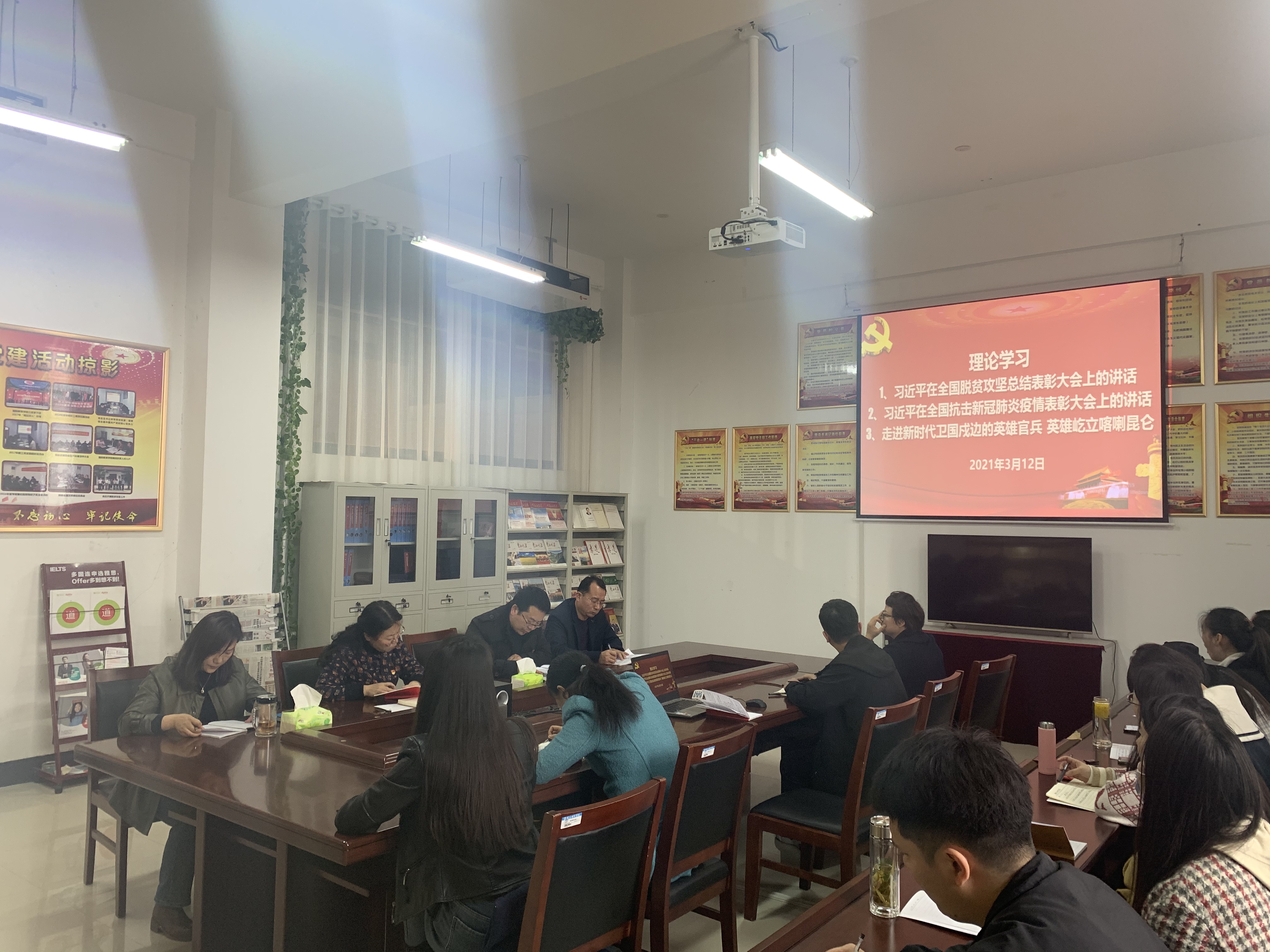 党总支副书记宁智锋领学了《习近平:在决战决胜脱贫攻坚座谈会上的讲话》、《习近平:在全国抗击新冠肺炎疫情表彰大会上的讲话》、《英雄屹立喀喇昆仑--走进新时代卫国戍边的英雄官兵》。党总支书记李秀琴作总结,要求全院教职工要牢记使命,勇挑重担,向奋斗牺牲在脱贫攻坚、抗“疫”前线和保家卫国战场上的同志们学习致敬,希望大家立足本职岗位,努力将员工培养为又红又专的社会主义合格建设者和可靠接班人。