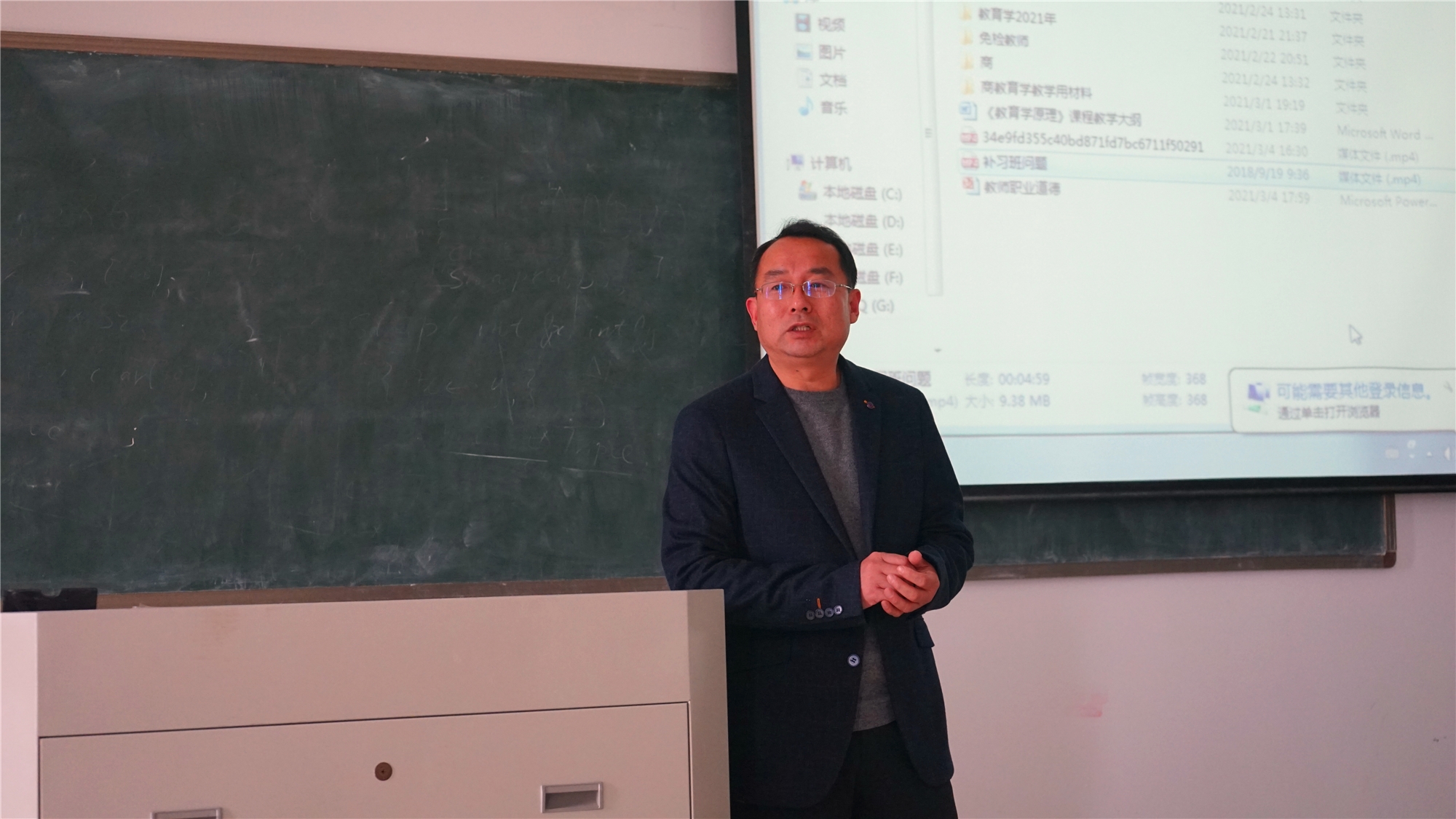 王军强副经理从新教师职业道德含义特点、我国高校教师职业道德主要规范及新形势下教师职业道德自我修养三个方面进行了充分的举例和讲解。王经理希望同学们在今后工作中以“新时代高校教师职业行为十项准则 ”为指导,严格要求自己,争做有理想信念、有道德情操、有扎实学识、有仁爱之心的教师。