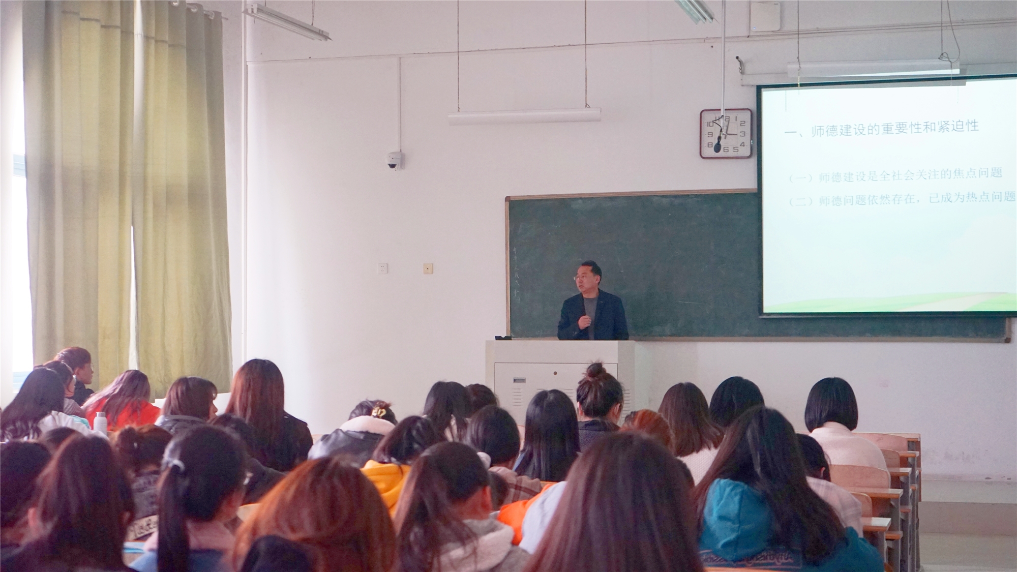 2021年3月5日下午,best365足球官网在梁园校区行方楼423教室举行“师德第一课”专题讲座。本次讲座由best365足球官网副经理王军强主讲,公司2020级、2019级小学教育和学前教育专业共200多名师范生参加了活动。