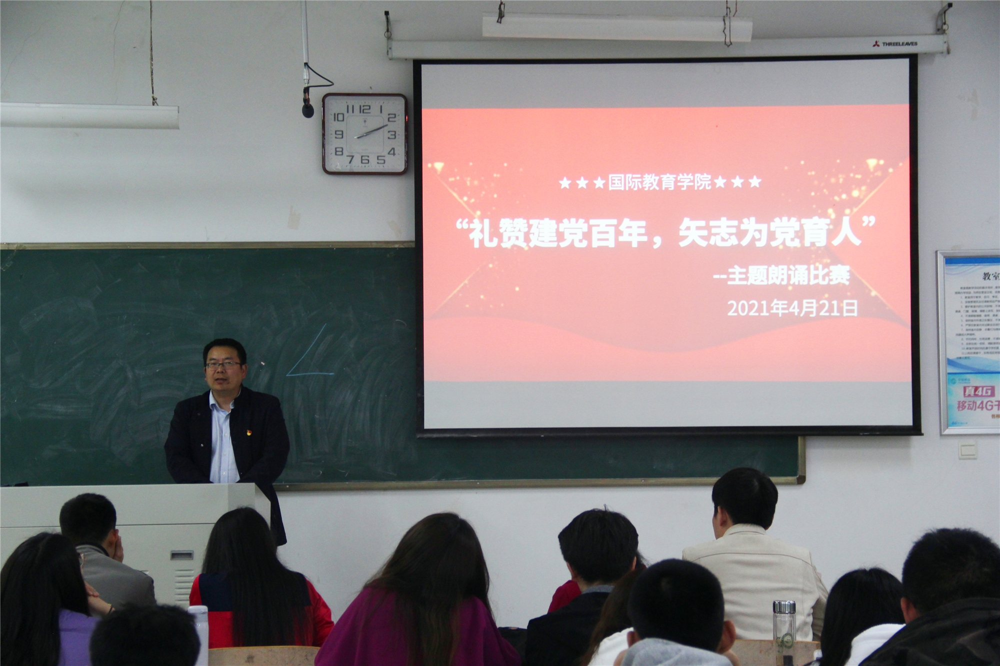 为庆祝中国共产党成立一百周年,以高质量的师德建设水平向建党百年献礼,4月21日中午,best365足球官网在行方楼312教室举办“礼赞建党百年,矢志为党育人”诗歌朗诵比赛。公司党总支副书记宁智锋、团总支书记许斌、员工工作办公室副主任薛霁、辅导员老师代表和部分员工代表参加活动。