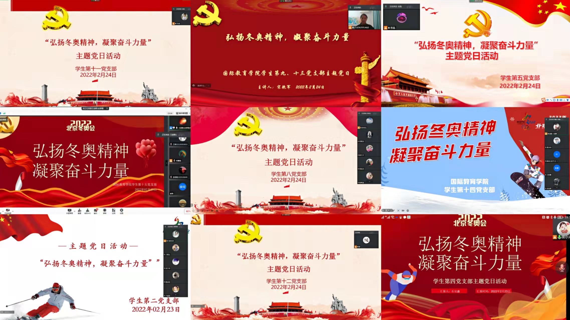 2月25日下午,教工党支部组织开展“弘扬奥运精神,凝聚奋斗力量”主题党日活动;2月23日—25日,16个员工党支部分别组织开展“弘扬奥运精神,凝聚奋斗力量”主题党日活动。活动以声情并茂的诵读领学、精美的图片展示、精彩的视频呈现等方式,串联起冬奥学习大课堂,教育引导广大师生党员从奥运精神中坚定信念、获得启发、汲取力量,不断增强做中国人的志气、骨气、底气。