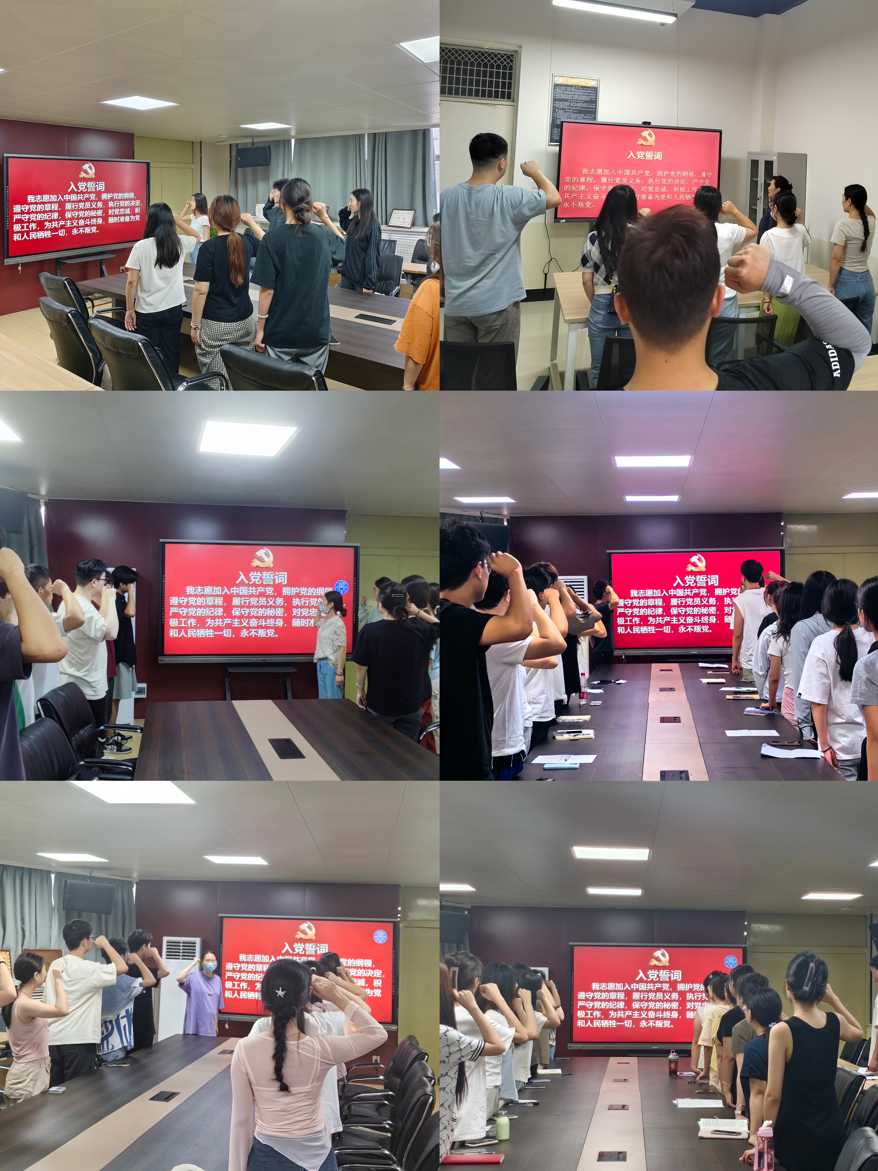 活动现场庄严肃穆,气氛热烈。党支部书记带领大家高举右拳重温入党誓词,誓言铿锵有力,激荡人心,充分展现了党员们对党的忠诚和对人民事业的坚定信念。在庄严的誓词声中,党员们回顾了党的光辉历程,深刻领会了党的初心和使命。
