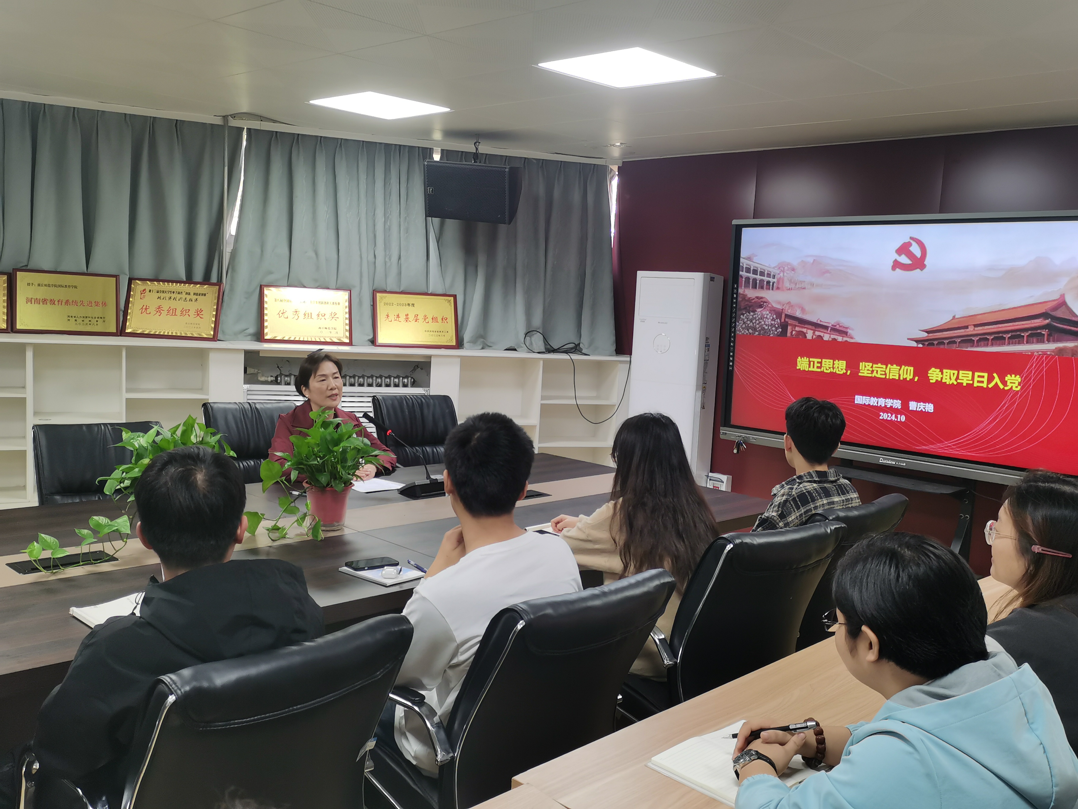 10月30日中午,党委副书记曹庆艳以《端正思想,坚定信仰,争取早日入党》为题,从“历史选择了中国共产党、新中国成立75年来取得的辉煌成就、端正思想、坚定信仰、希望和建议”等五个方面为入党积极分子们上了一场别开生面的党课,帮助入党积极分子们更加深刻地了解了党的历史和国家的发展成就,也进一步认识到了端正思想和坚定信仰的重要性,并引导他们以此次党课为契机,加强学习锻炼,不断提高自己的政治素质和业务能力,争取早日成为一名光荣的中国共产党员。