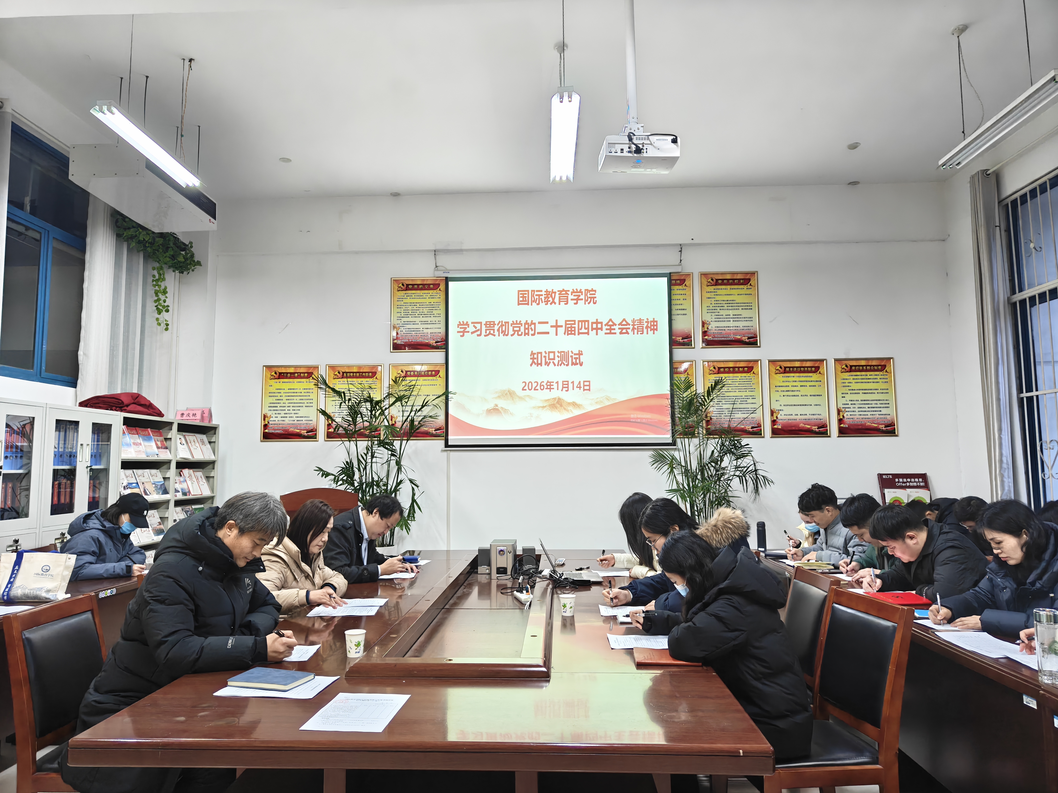 为深入学习宣传贯彻党的二十届四中全会精神,切实把全公司党员的思想和行动统一到党中央决策部署上来,推动理论学习入脑入心、见行见效,best365足球官网于1月14日下午在梁园校区汉梁楼144党员活动室组织全体教师党员开展学习贯彻党的二十届四中全会精神知识测试主题党日活动。