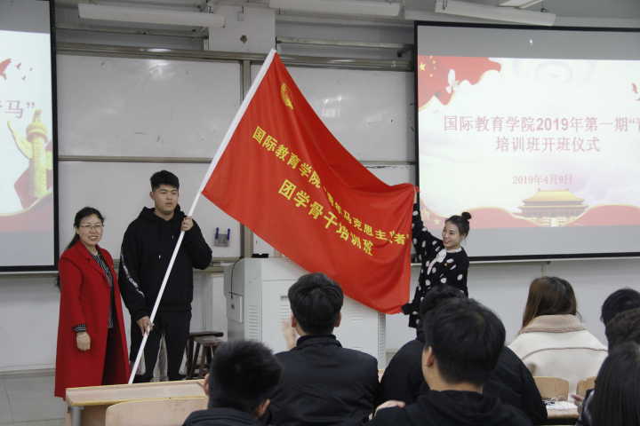 最后,李秀琴为第一期青马班班长田园园与团支书张译文授旗。开班仪式在中国共青团团歌的歌声中落下帷幕。