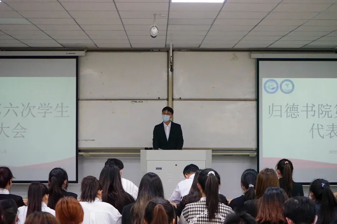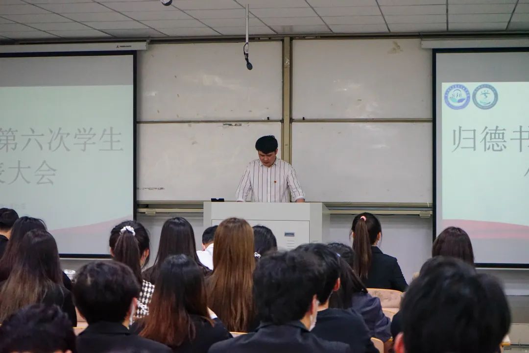 大会上全体师生庄严肃穆、奏唱国歌。首先由员工会第七届主席李紫旭同学代表第六届员工委员会作报告。他表示,大家要牢记初心使命,继续坚持“来自同学,服务同学”的本质,以实际行动为同学服务;继续实现自我价值,组织员工工作,展示新时代青年的朝气蓬勃。