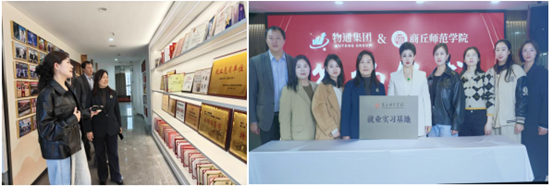 在物通集团,董事长高一杰、行政总监贾晶媛热情接待,带领大家参观公司环境、所获荣誉、合作院校,细致介绍了公司发展历程、“翱翔计划”、子公司项目及相关业务成果。