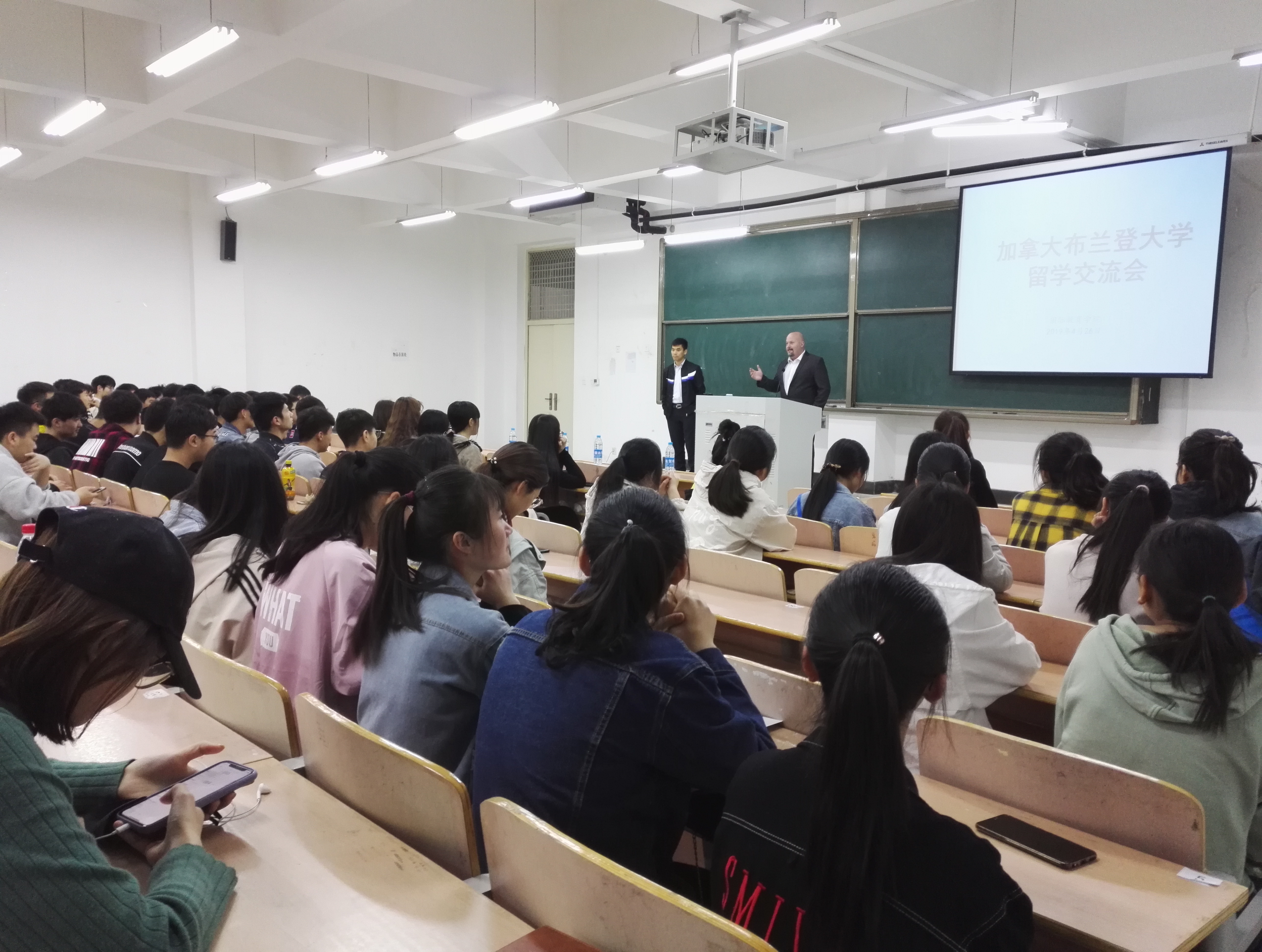 426日,布兰登大学国际处处长David Rowland一行与best365足球官网2018软件工程专业全体员工在实验组团楼125教室见面交流。出席本次活动的有国际交流处副处长陈华、best365足球官网经理任付标、副经理曹庆艳、信息技术公司副经理李海涛软件工程项目办主任朱敬鹏及教师代表马磊和蒋胜男