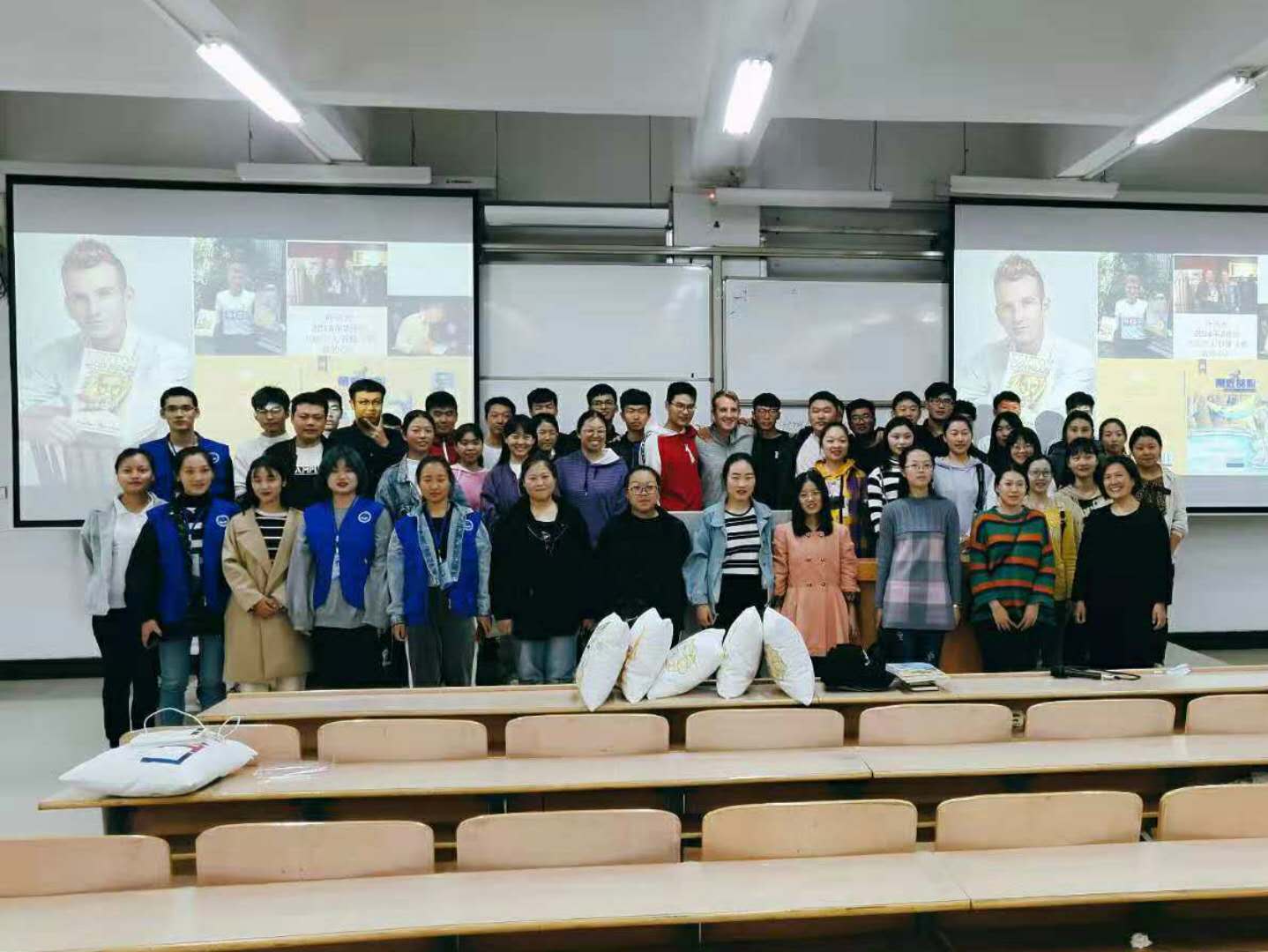 在提问环节中,气氛非常热烈。同学们由初始的拘泥变成了后来的主动上台交流。他们讲述了自己在学习语言和追梦道路上的困惑,风光老师的回答也让大家对英语学习和人生梦想有了更好、更清晰的规划。
