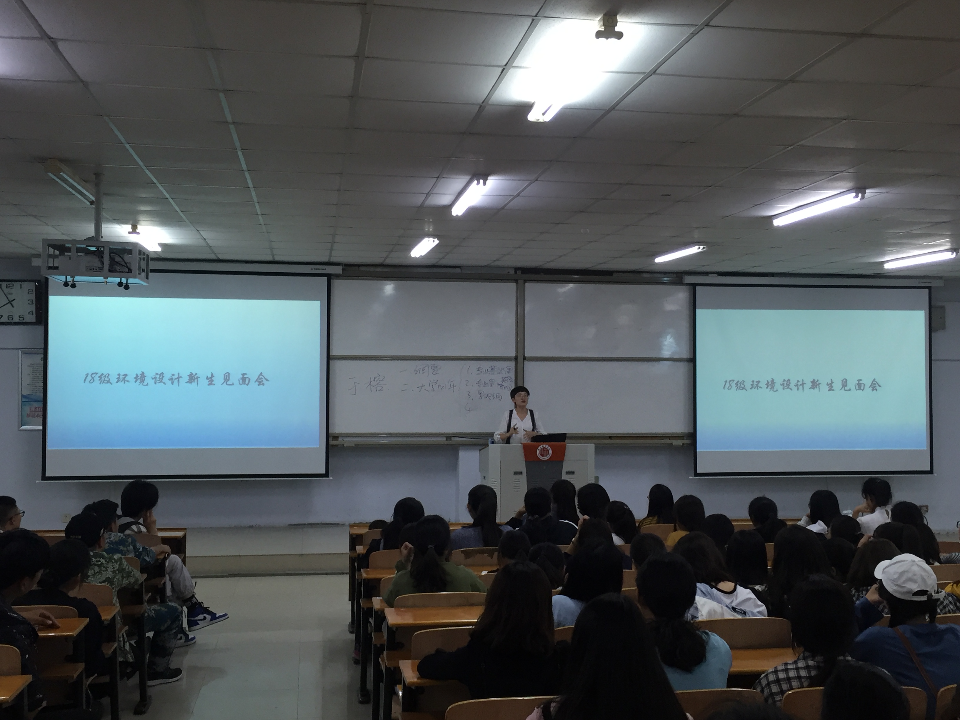 邵长鸿老师从教师团队、员工获奖与双创、工作室、专业方向等五方面入手,为新生们详细讲解了各专业的学习方法和技巧,陈静老师就环境设计专业进行了介绍;接着,朱经理分别对各专业教学方面的工作做了进一步的补充,希望同学们积极适应学习新环境,认真学习专业知识。随后,于榕老师、李莉老师对学业规划和人才培养方案进行了具体说明,并邀请16级、17级员工代表向新生分享了网上选课及学分绩点的相关经验。