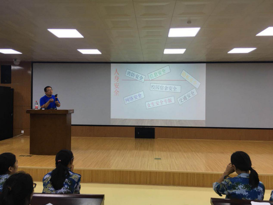 然后,进行安全和法制教育,宁书记以以往员工管理中出现的案例为切入点,对新生人身、交通、消防、外出等方面的安全进行了教育,让同学们掌握防盗、防火及自救知识,提醒同学们保护人身、财产安全,增强自我保护意识。