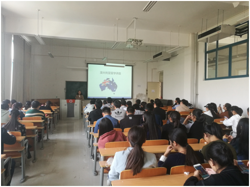 之后,陈欢老师为同学们讲解了南澳大学留学事宜。她结合当前高等教育国际化趋势,强调了出国留学的重要意义,并对留学政策、留学项目、以及留学申请等事项作了详细介绍,以便让同学们对出国留学更加了解。