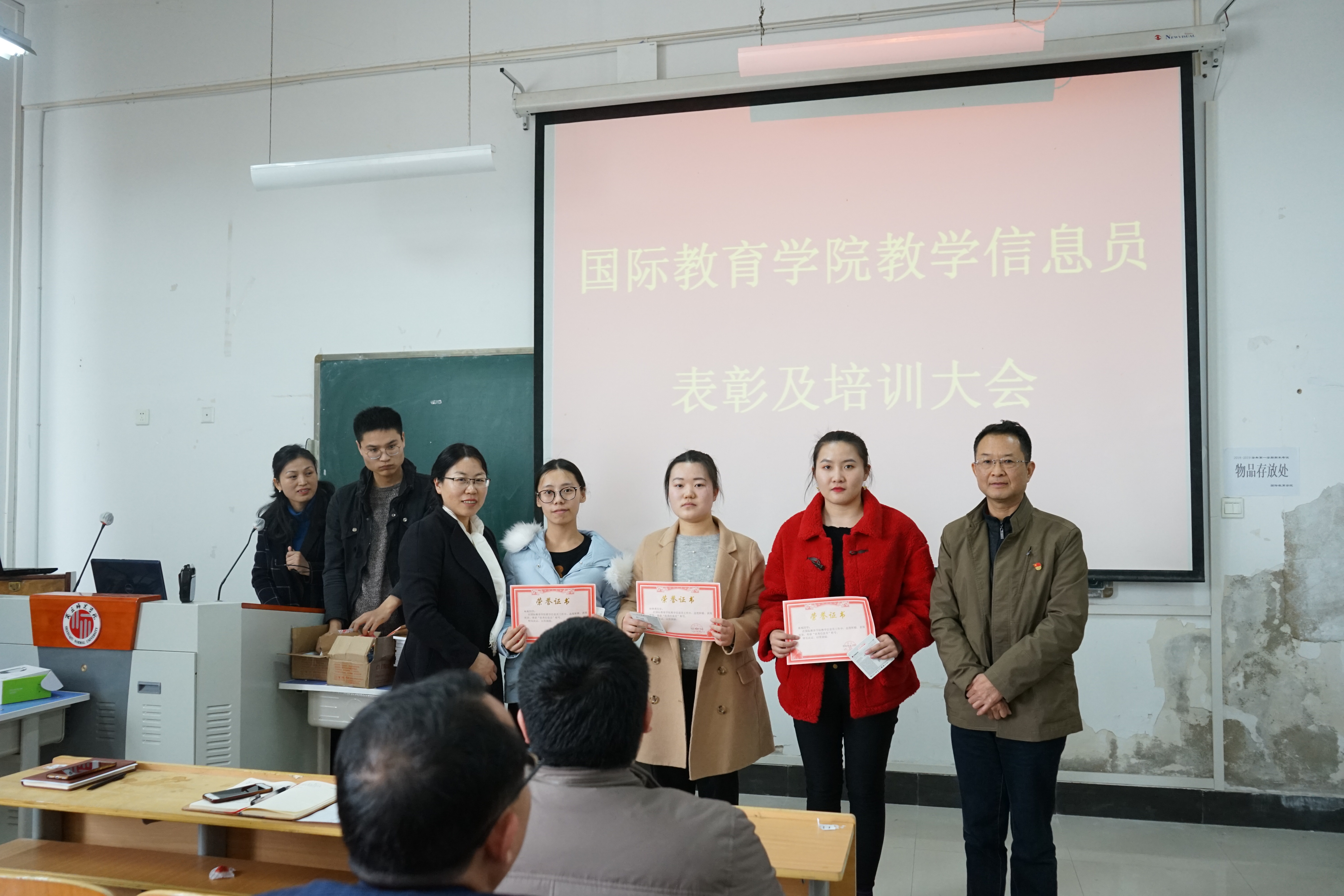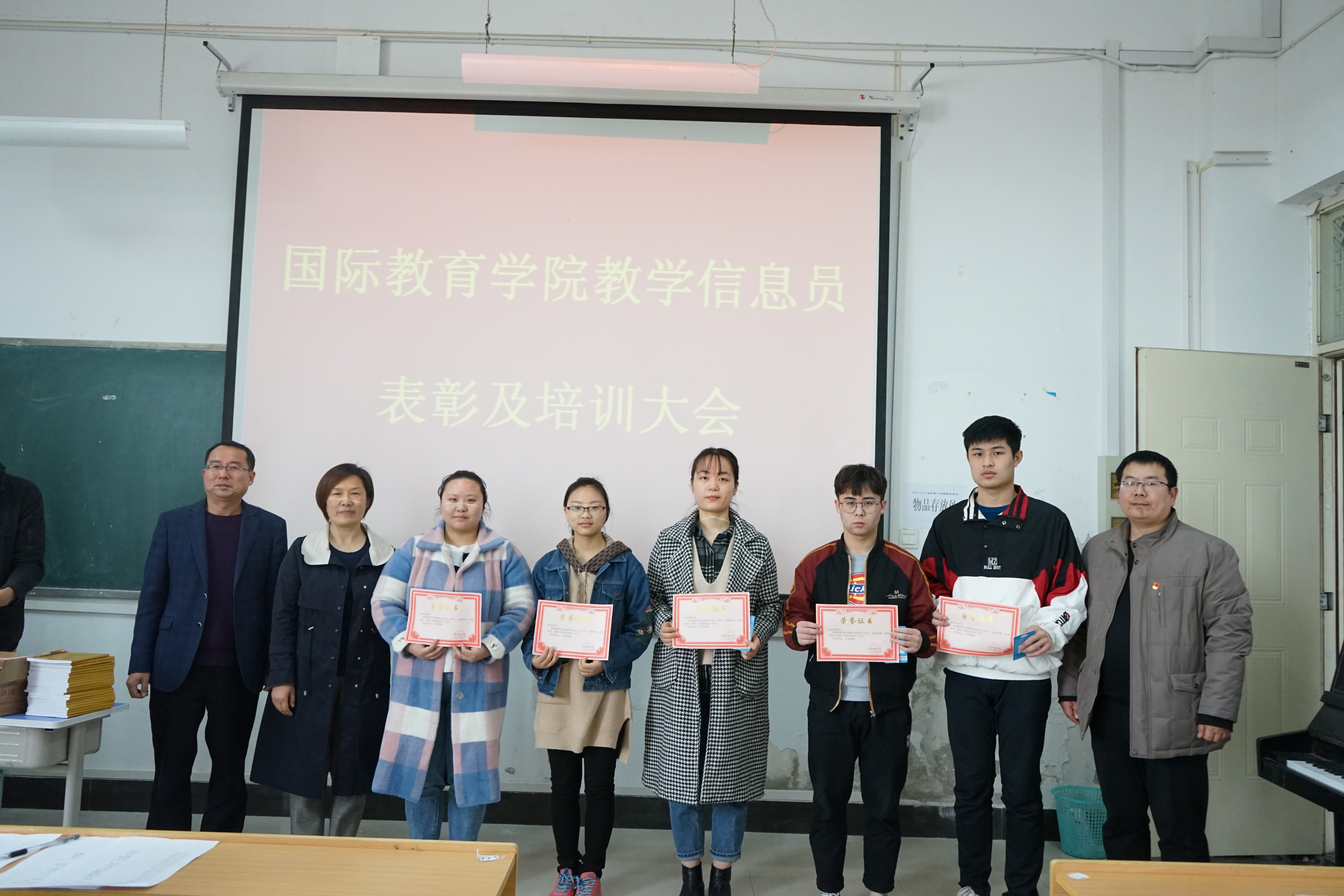 王军强副经理对教学信息员一年来的工作进行点评和感谢,并提出了教学信息反馈工作中存在的问题及解决办法。周艳老师宣读了优秀信息员获奖名单,公司领导随后为获奖的信息员同学颁奖。