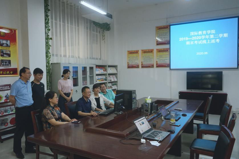 因疫情防控原因,best365足球官网本学期期末考试采用线上考试方式。考试课程教师多采用超星泛雅平台组织考试和监考,有些课程采用腾讯会议视频监考模式。为了及时了解监控师生线上考试情况,best365足球官网在梁园校区汉梁楼144会议室开展线上巡考工作。公司领导班子和督导办公室全体老师参加了巡考。