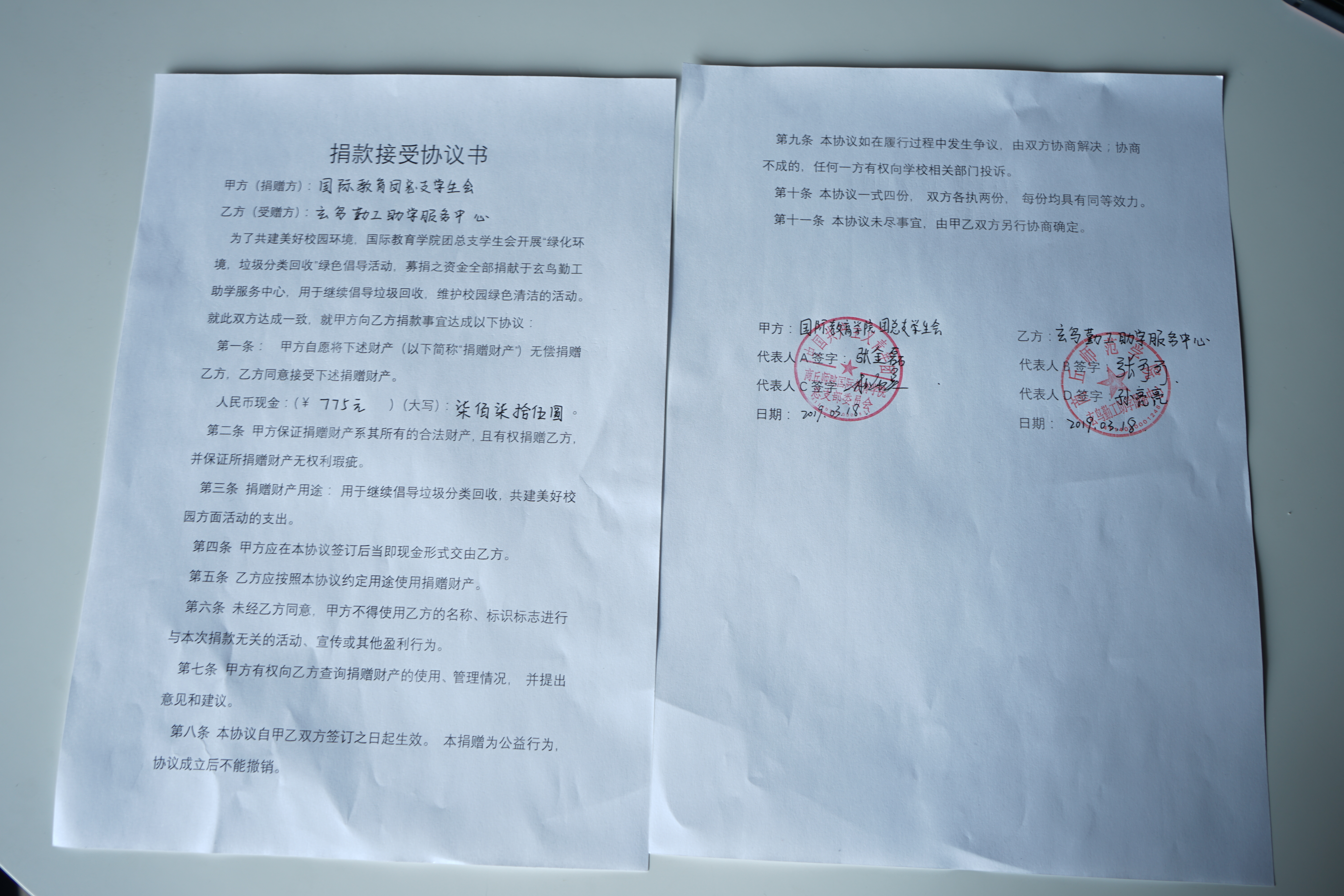 在活动开展的过程中,公司的同学们积极收集废纸、废弃塑料瓶等,工作人员更是耐心地为大家讲解垃圾的危害、处理方式以及垃圾分类的意义,并举例说明在日常生活中应该如何对垃圾进行简单分类,变废为宝。同时,我们的工作人员也呼吁广大师生爱护校园,以保护校园环境为己任,积极参与到美化校园环境、构建环保和谐型校园的活动中来。此次活动“变废为宝”,共得775元,已全部捐赠至公司玄鸟勤助学服务中心,为公司校园建设增砖添瓦。