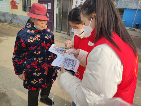 王亚同学的工作内容主要是组织群众分组进行核酸检测、登记社区信息、录入检测信息、带着医生入户给行动不便的老年人做核酸等。工作繁忙,但不乏温暖,村里老人居多,她主动帮助群众扫码、登记信息,高效地完成相关工作。通过这次的志愿服务,她真切体会到了一线抗疫人员的辛苦,也见到了他们坚决抗击疫情的决心与为之做出的努力。