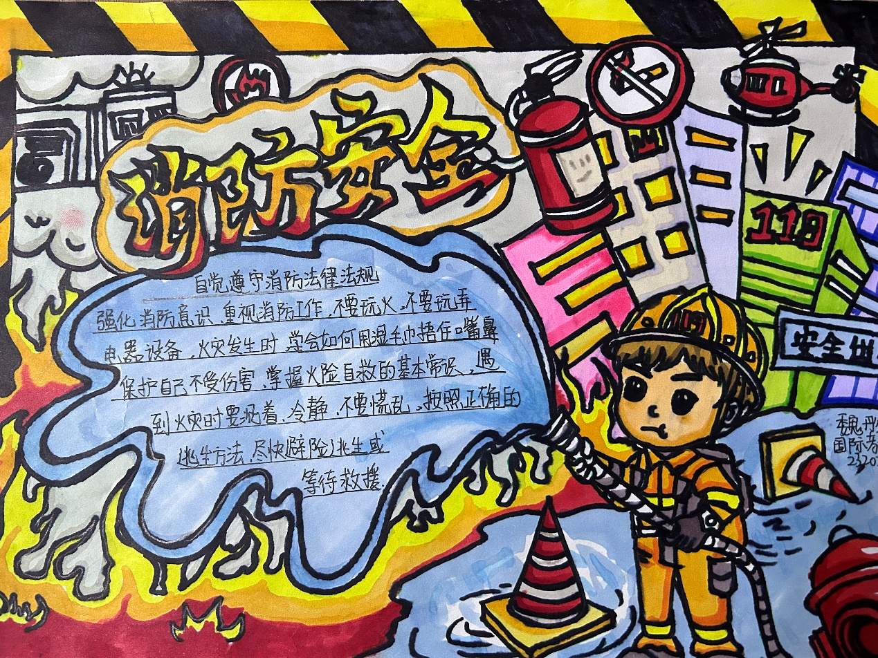 比赛期间,同学们精心设计版面,巧妙运用色彩和文字,创造出了一幅幅内容丰富、创意十足的手抄报作品。展现出同学们丰富的创造力,充分体现了消防安全的重要性。比赛结束后,文体部工作人员根据比赛细则评选出了一等奖两名,二等奖三名,三等奖四名。