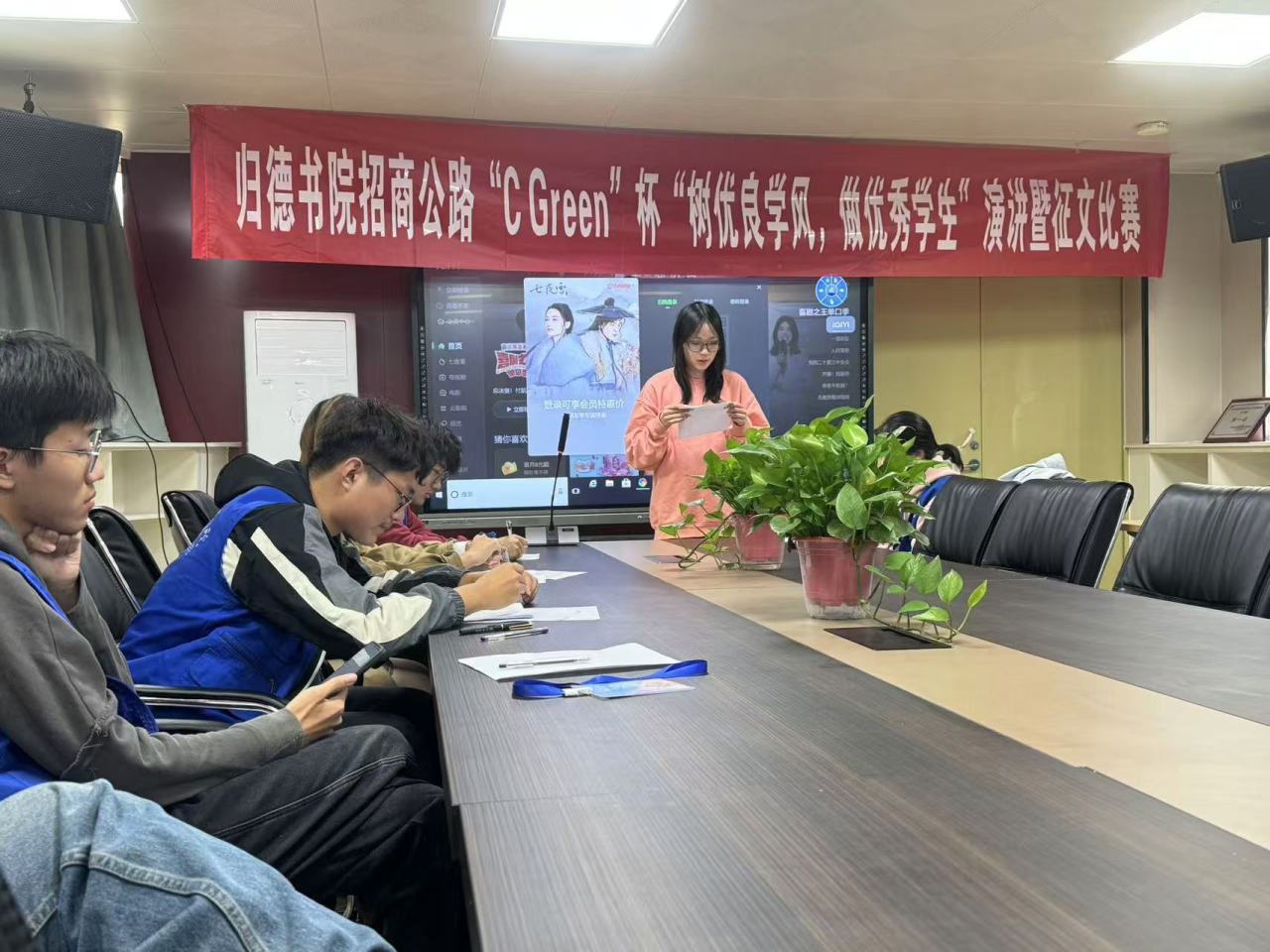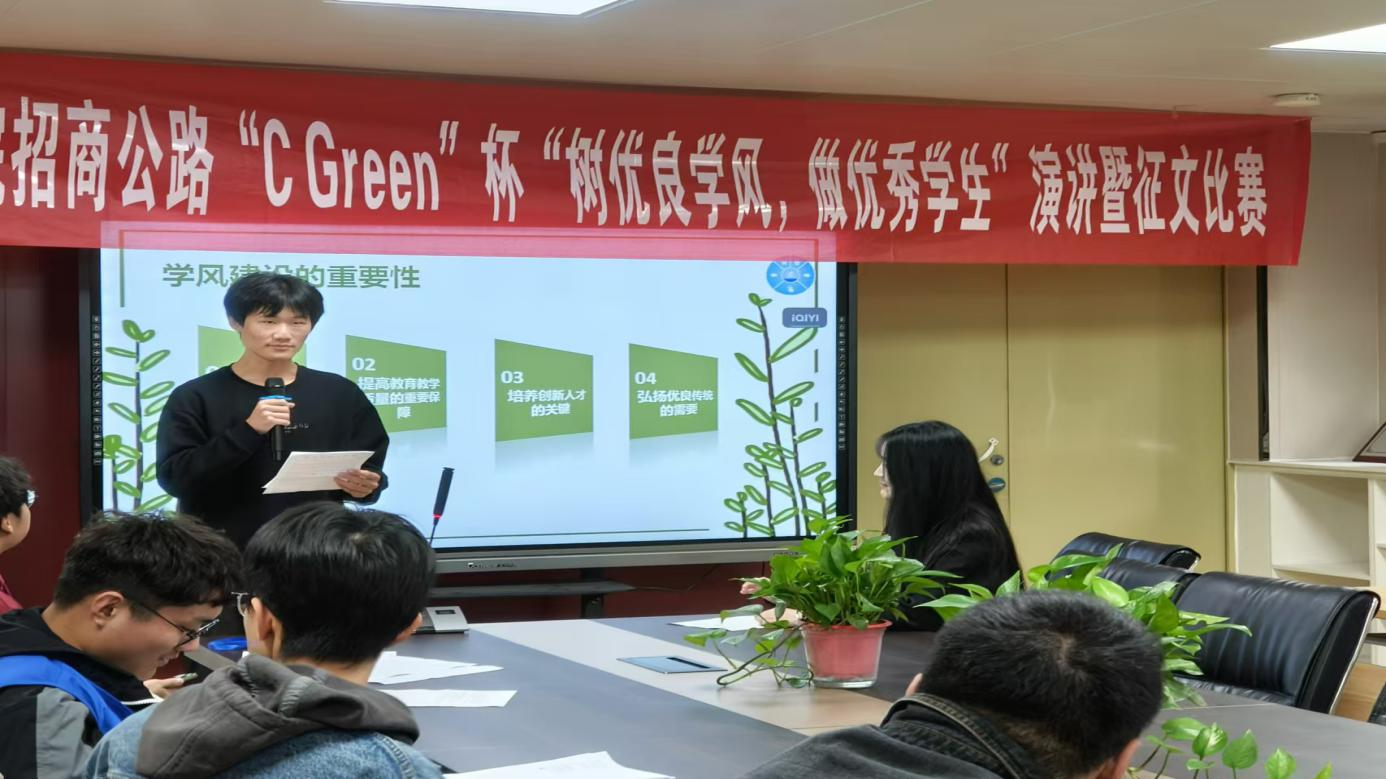 为了激励员工积极进取,营造良好的学习氛围,促进书院学风建设。归德书院员工会学创部于10月22日在27号楼二楼会议室举办了招商公路“C Green”杯 “树优良学风,做优秀员工”演讲暨征文比赛。