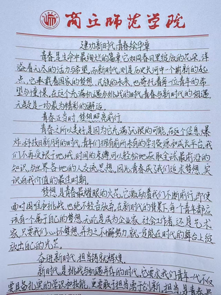 为提高同学们的文学素养和表达能力,激发创作热情,展现青春风采。归德书院员工会新媒体中心于10月25日在归德文化广场举办了招商公路“C Green”杯“青春正当时,奋进新时代”征文比赛。