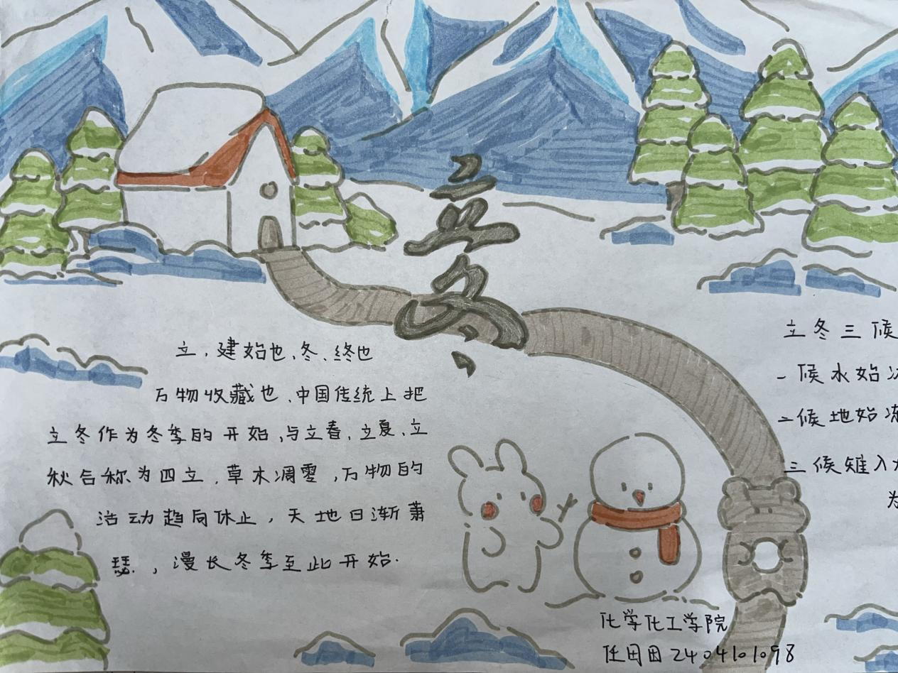 本次活动通过手抄报的形式,呼吁同学们了解“立冬”这一传统文化。活动期间,同学们在自身创作手抄报的同时,深入地了解“立冬”的历史由来、习俗演变和诗词之美,传承传统文化的同时也体现了同学们的创新思维。活动结束后,工作人员根据评分细则评选出了一等奖两名,二等奖三名,三等奖六名。