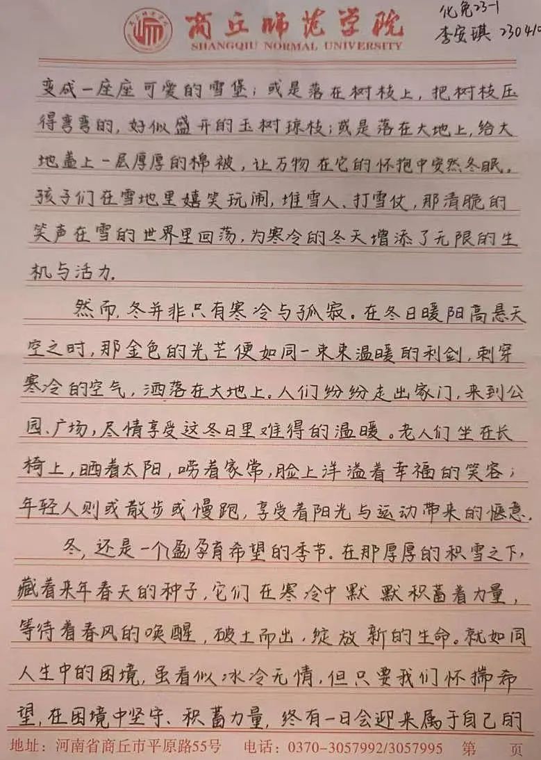 为增强同学们对节气的理解,归德书院员工会学创部于11月22日在归德文化广场举办了招商公路“C Green”杯“暖阳照耀,文绘冬日”征文比赛。